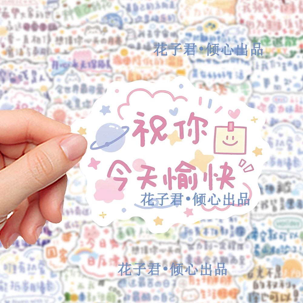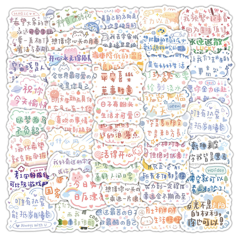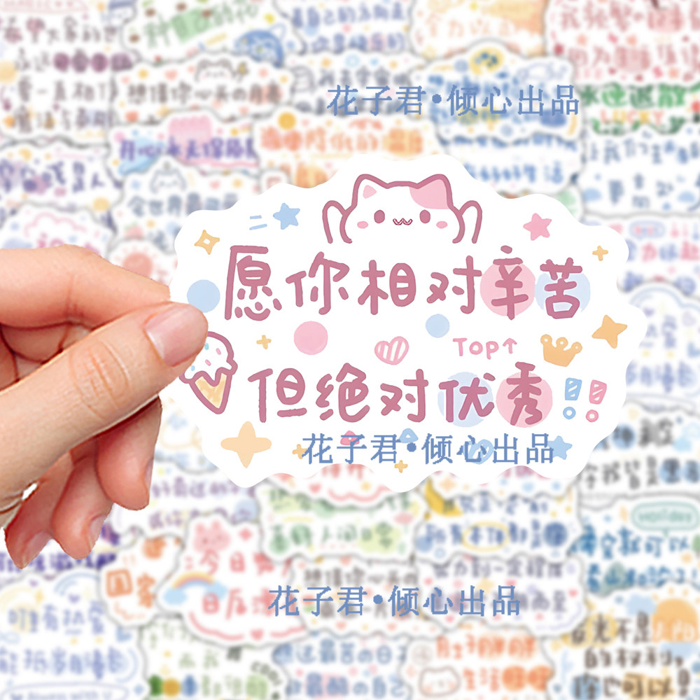 140张可爱励志文字贴纸ins风正能量暖心治愈文案贴画diy手账桌面