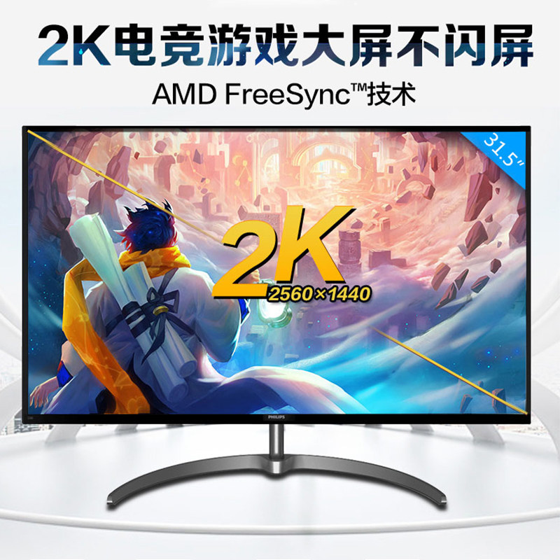 飞利浦325E8 32寸2K电脑显示器白色显示屏ips护眼商用大屏显示器