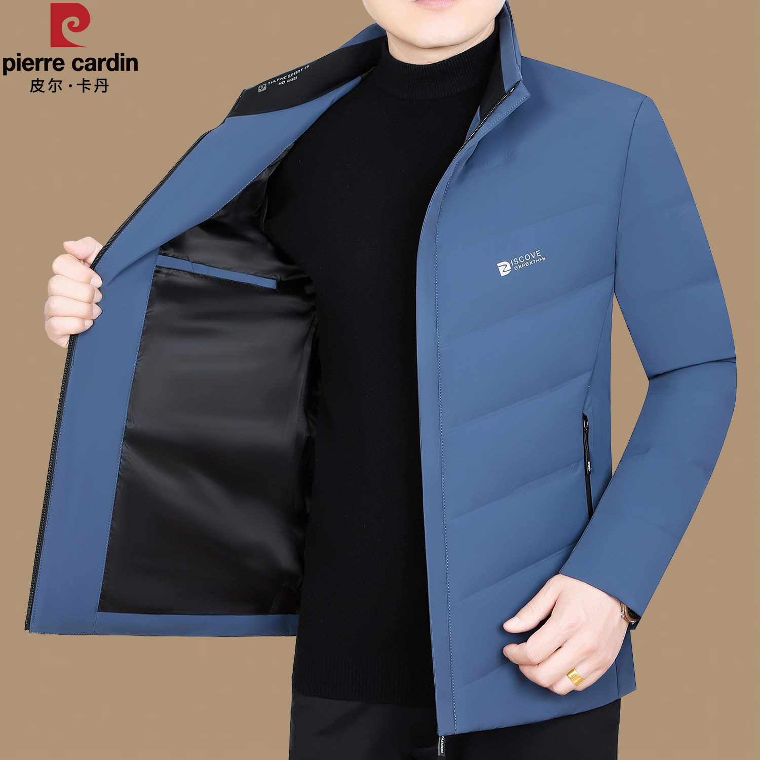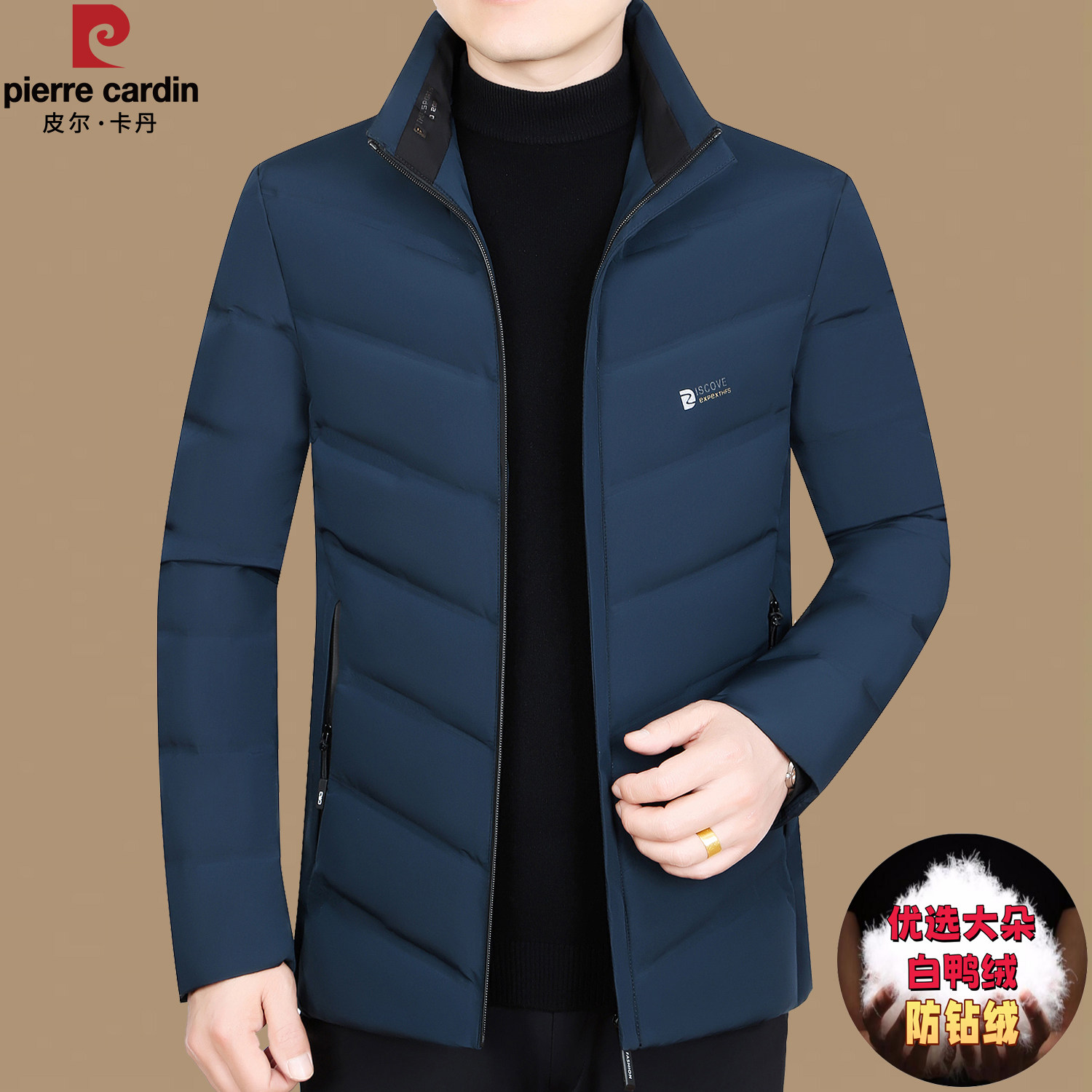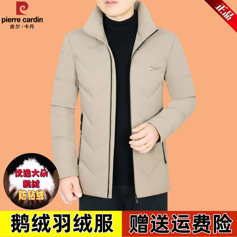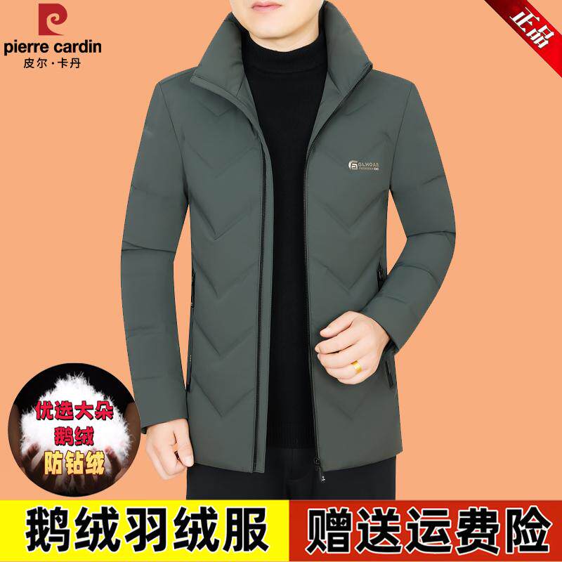 皮尔卡丹冬季新款鹅绒男士中年保暖爸爸装休闲短款外套轻薄羽绒服