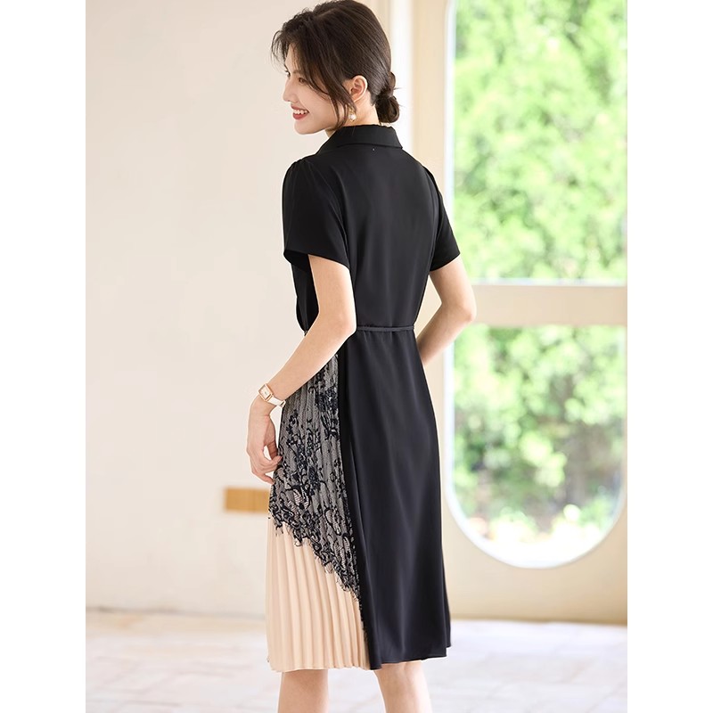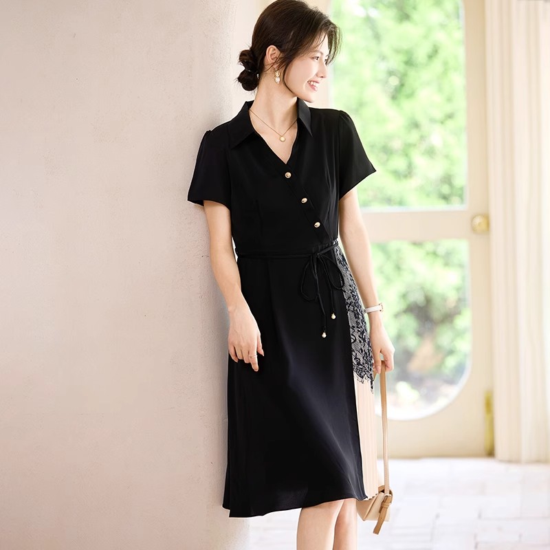 喜卉气质妈妈夏装端庄大气v领连衣裙中老年时尚女装收腰遮肚裙子