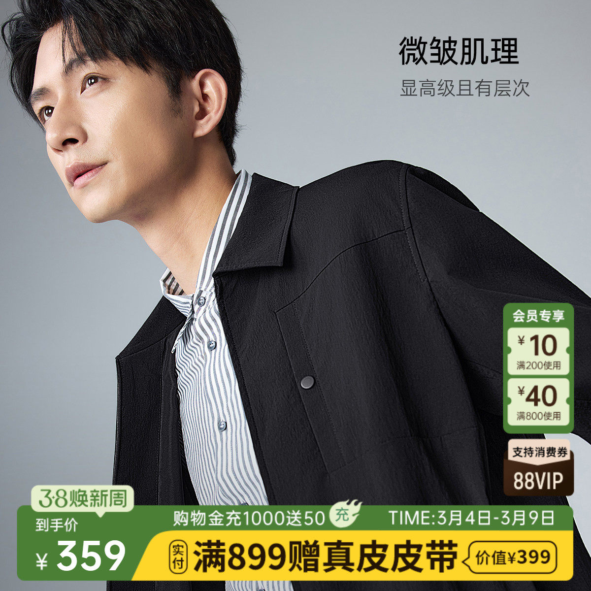 【薄款】利郎官方 夹克男士2026春季翻领纯色短款弹力口袋外套男