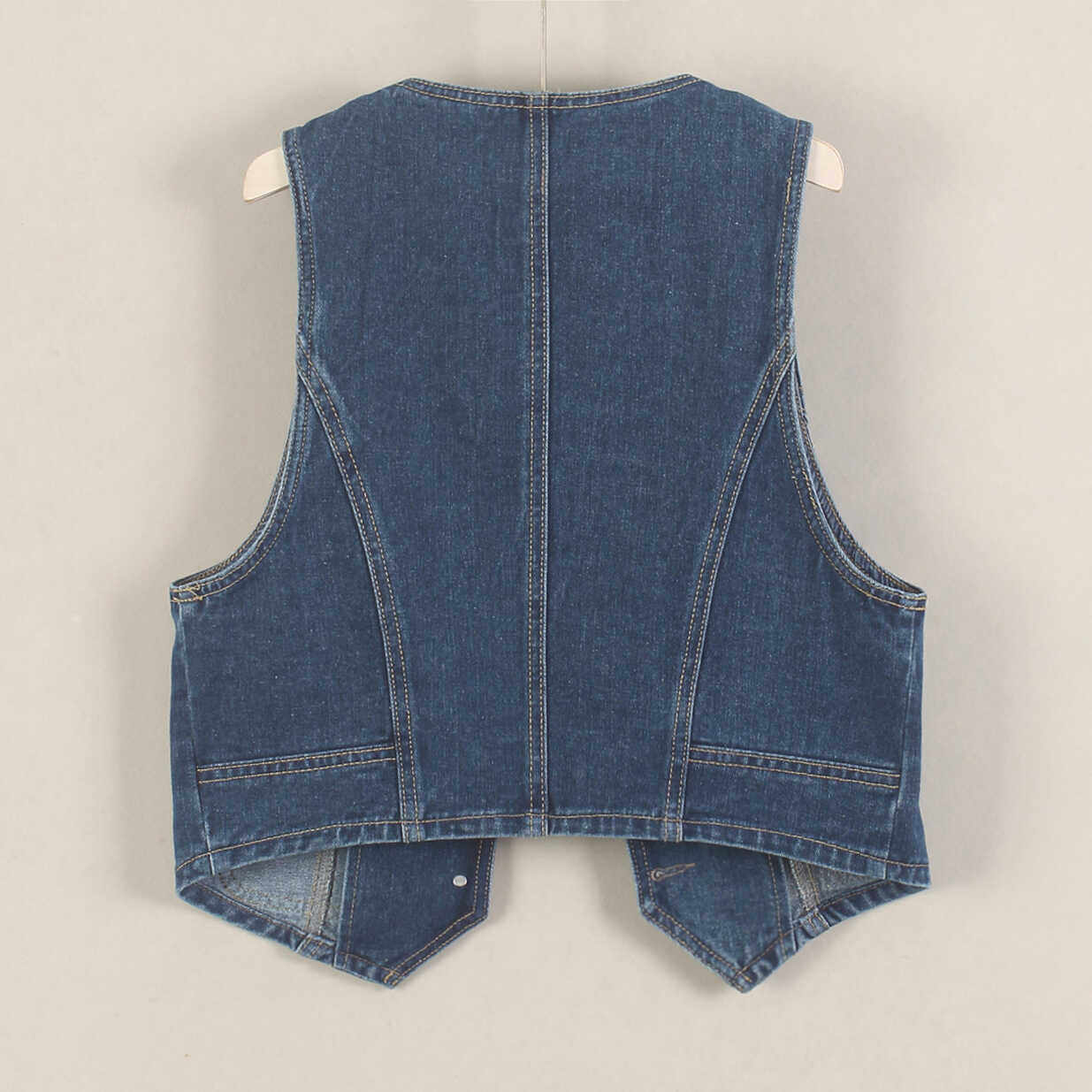 大口袋超短牛仔马甲V领