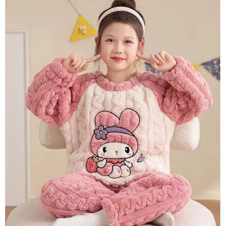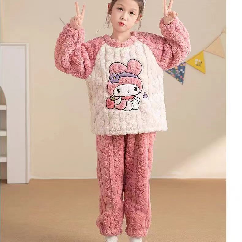女孩秋冬季家居服套装新款加绒加厚保暖宽松新款法兰绒中大童睡衣