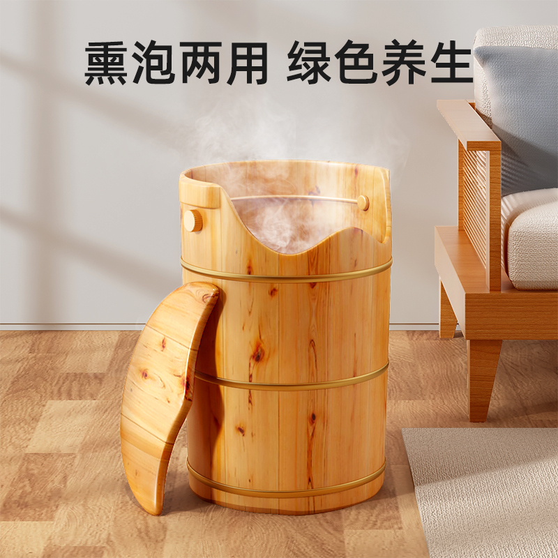 高深泡脚桶木桶过膝盖过小腿熏蒸桶木质家用洗脚盆恒温实木足浴桶
