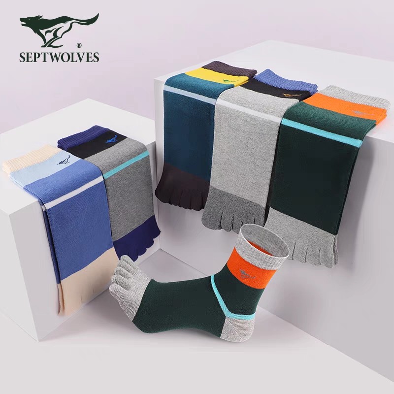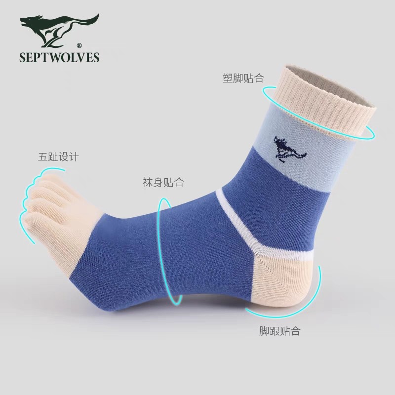 七匹狼男士五指袜纯棉防臭全棉袜子中筒五趾袜秋冬厚运动防滑透气