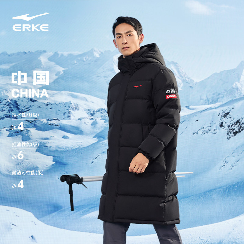 中国丨鸿星尔克四防长款羽绒服男冬季新款男士防水外套大衣男装