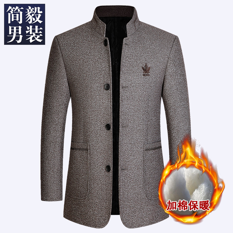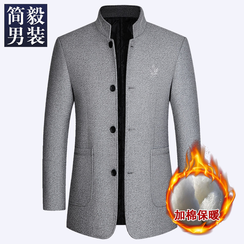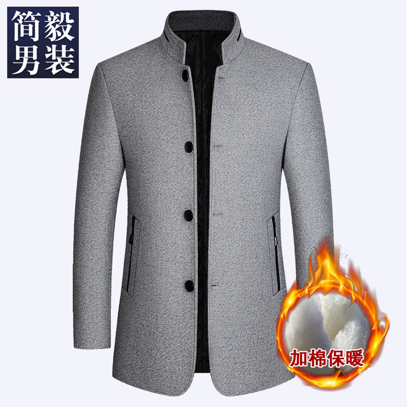 新款毛呢大衣男立领中山装男士外套秋冬季高档外套夹克中青年宽松