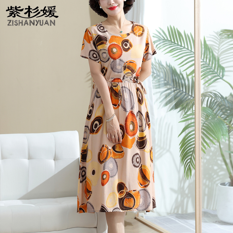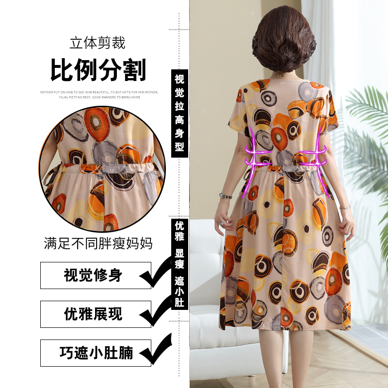 中年女士60岁妈妈夏装人造棉棉绸连衣裙夏季女新款时尚洋气遮肚子