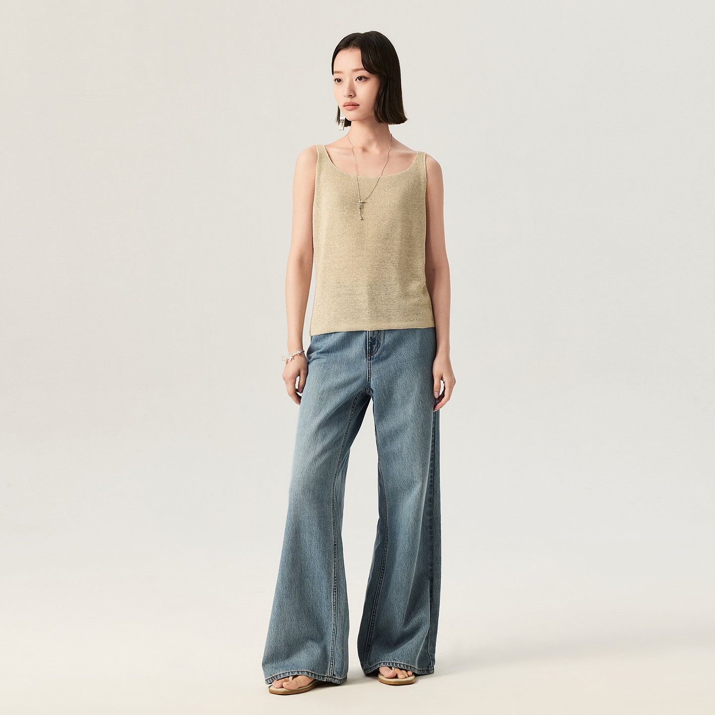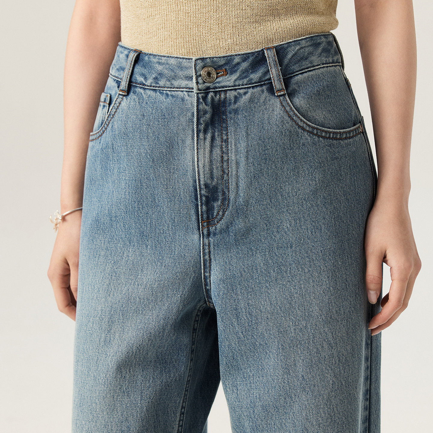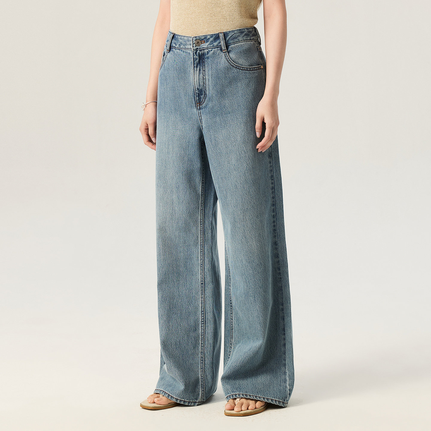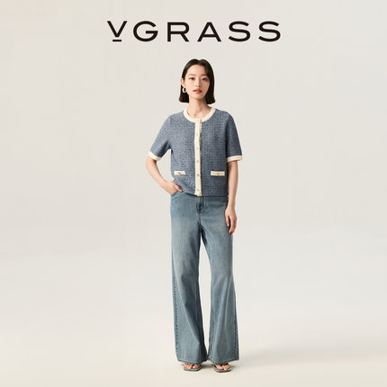 VGRASS维格娜丝26夏季新款棉混纺复古水洗经典蓝色阔腿牛仔裤女