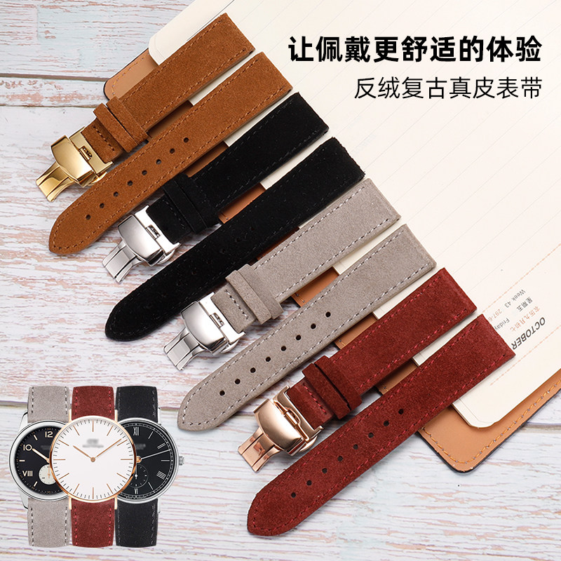适配dw阿玛尼天王天梭1853力洛克浪琴律雅精工超薄手表带男反绒皮