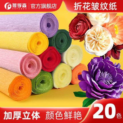 皱纹纸彩色手工花材料包花束立体花幼儿园小学生折做鲜花纹理纸叠花康乃馨玫瑰花绿粉黄红蓝花艺纸加厚邹纹纸