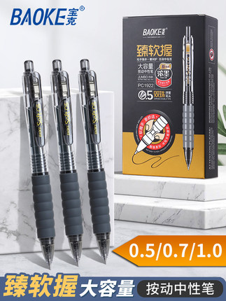 宝克臻软握按动中性笔0.5/0.7mm1.0签字笔碳素水笔签名笔硬笔书法