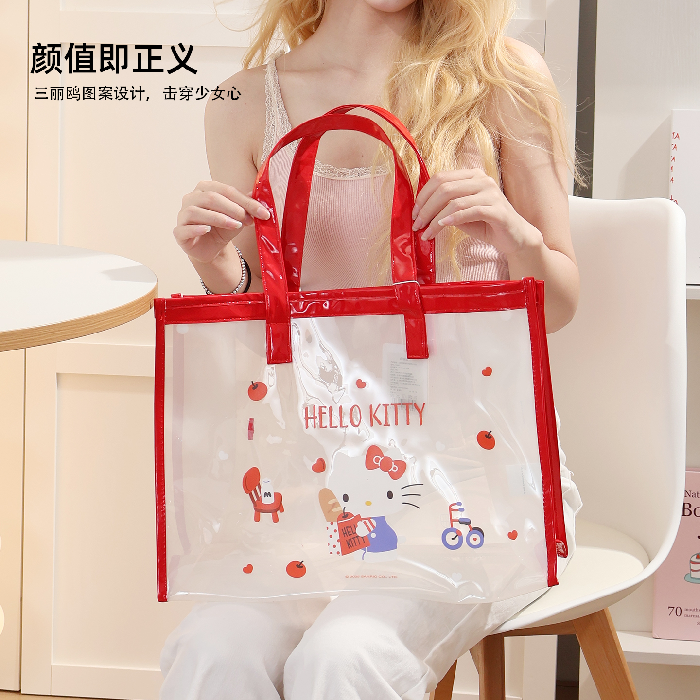 三丽鸥正版授权凯蒂猫单肩包托特女包可爱卡通手提包透明夏日休闲