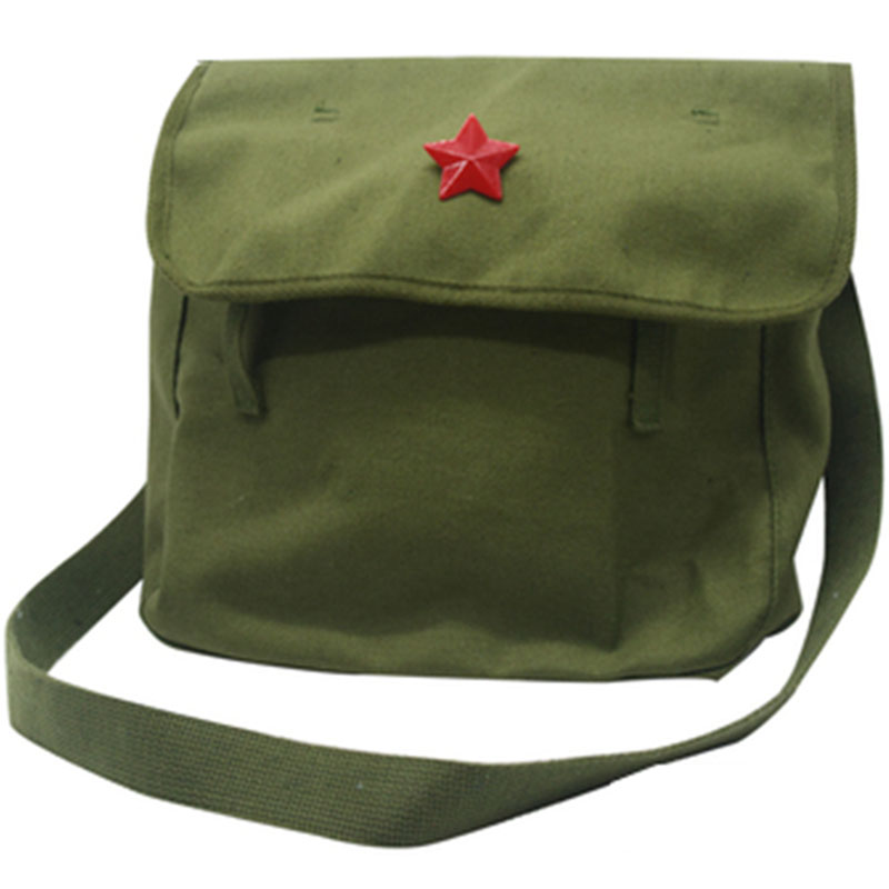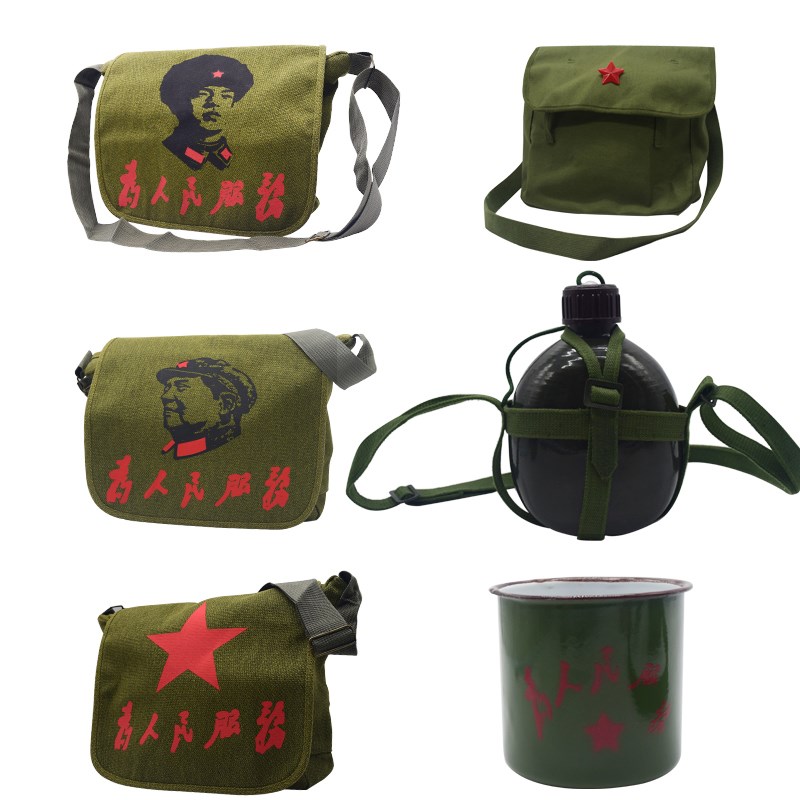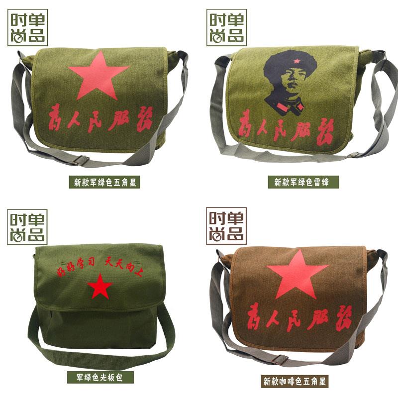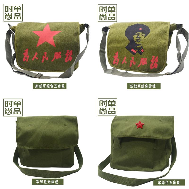 包邮帆布包单肩包斜挎背包毛主席书包为人民服务男复古包军绿色