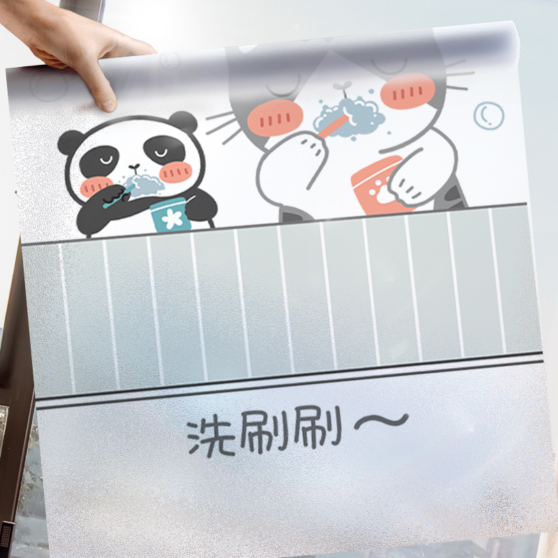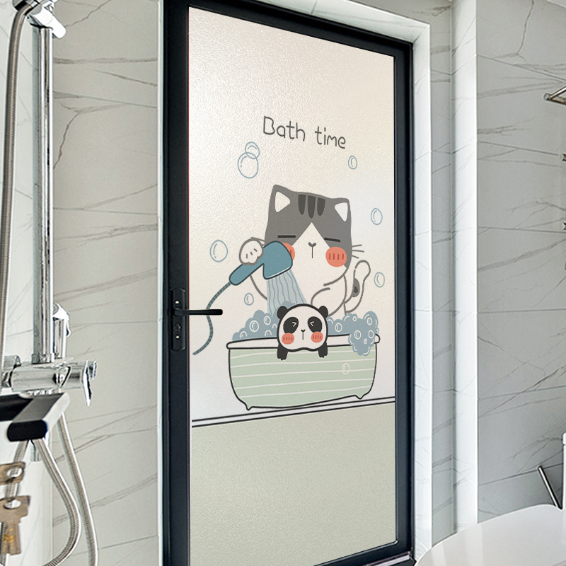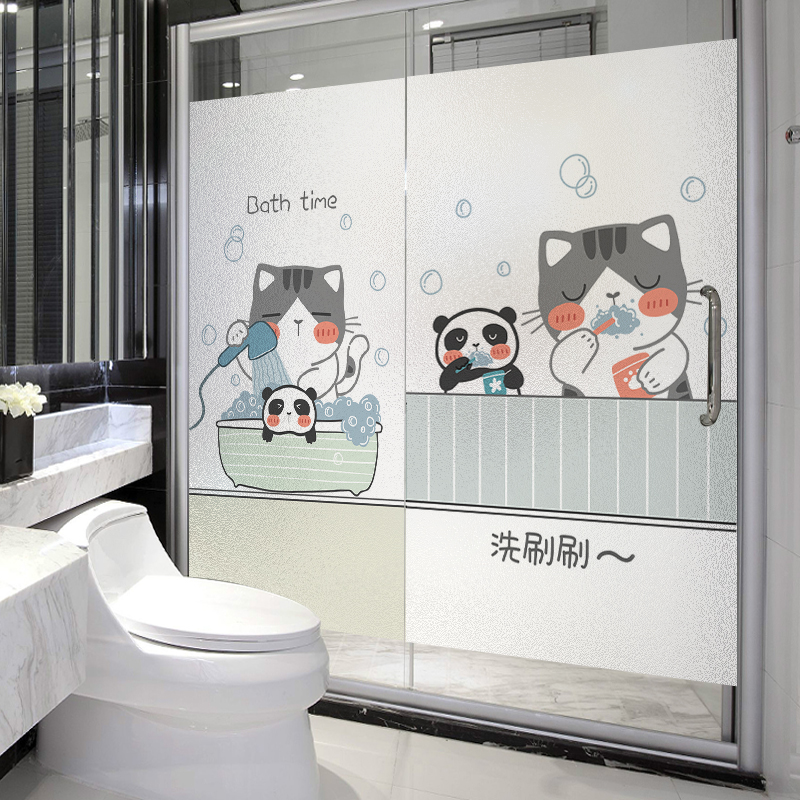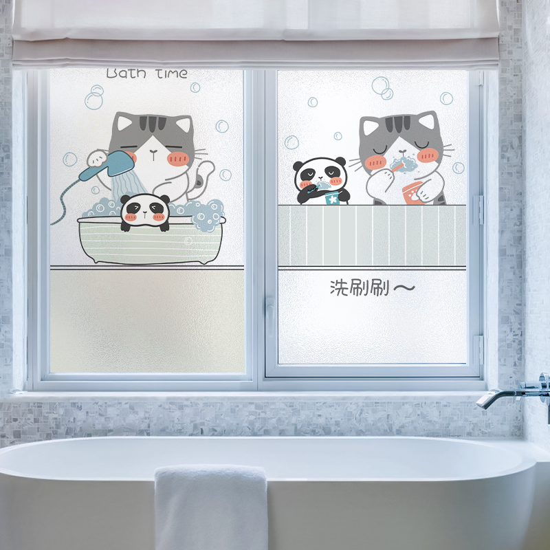 玻璃贴纸透光不透明卡通猫咪磨砂贴膜卫生间玻璃窗防窥窗户防走光