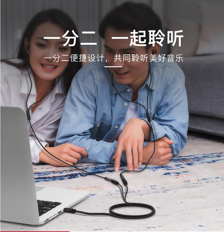 秋叶原3.5mm公对母一分二音频线耳机电视输出分线器情侣双人共享