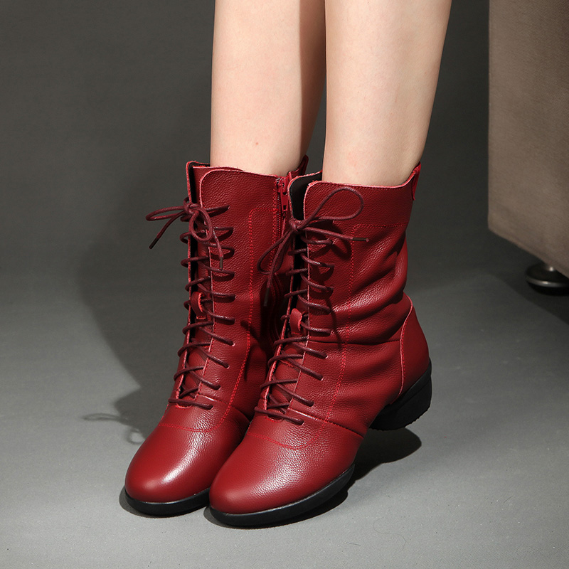 恰恰鱼春夏新款真皮舞蹈鞋广场舞蹈靴女高帮软底镂空水兵跳舞鞋子