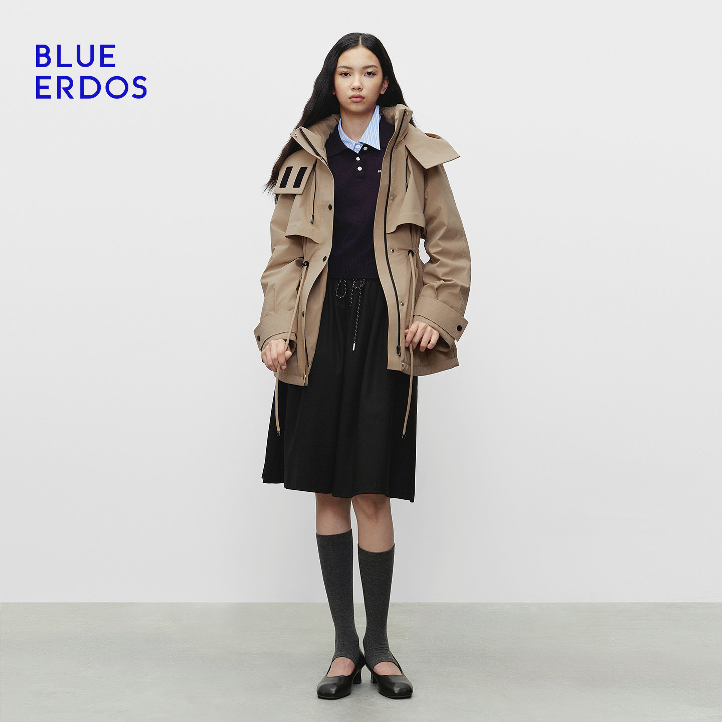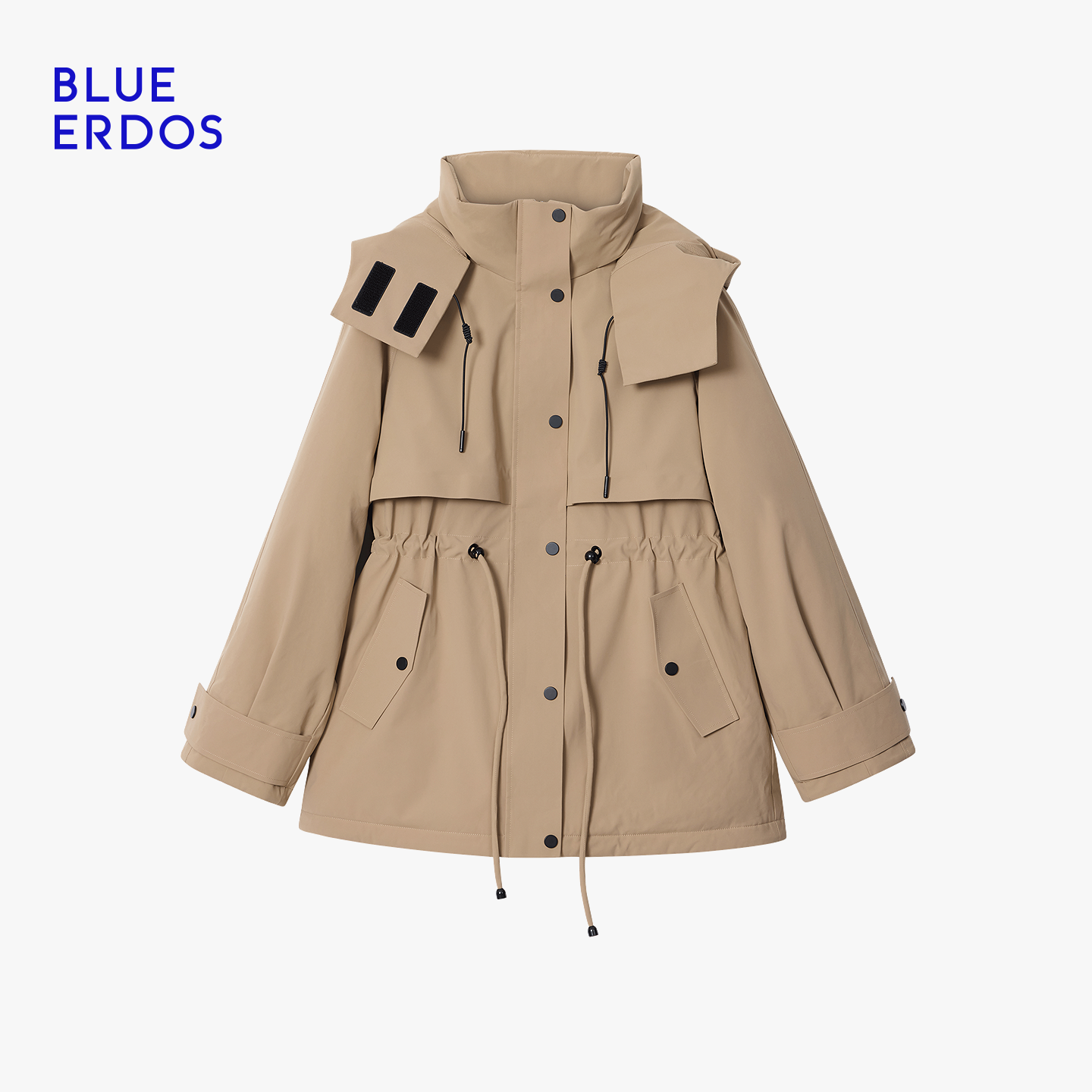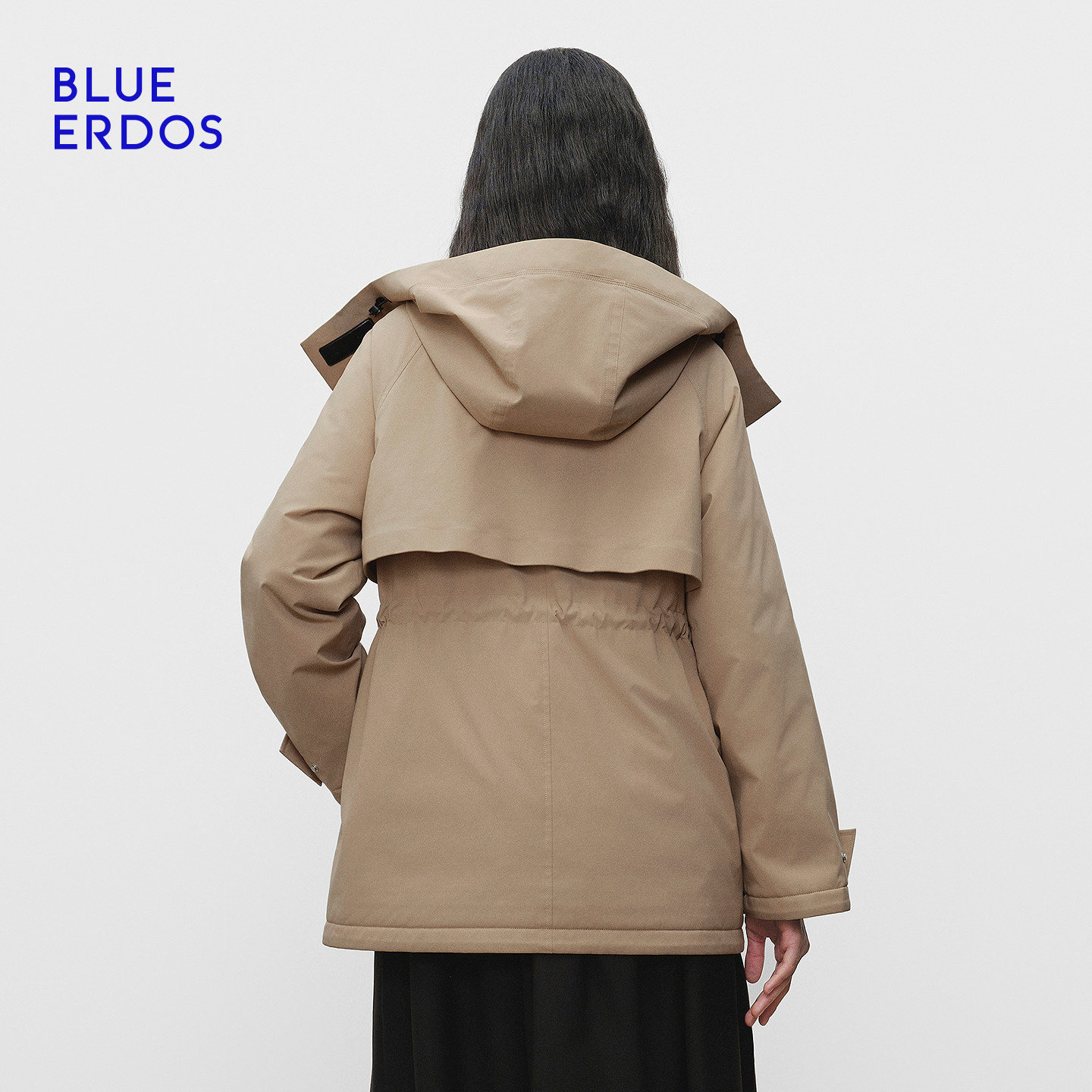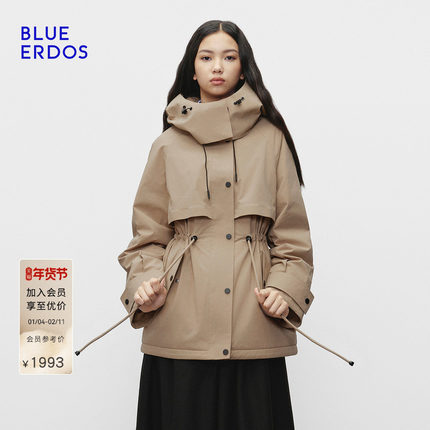 BLUE ERDOS 冬季新品复古休闲工装风收腰连帽羽绒服外套女
