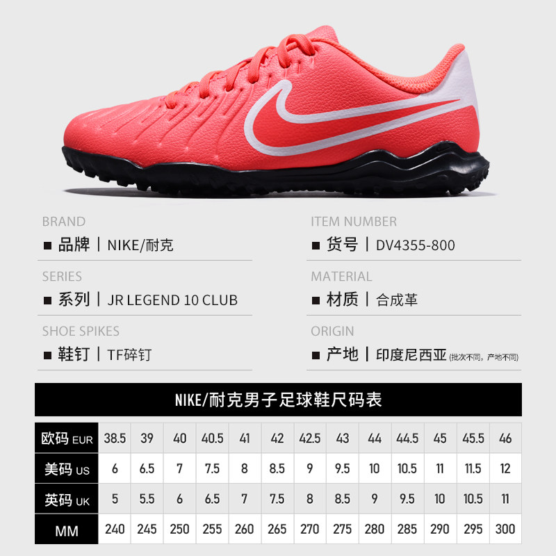 Nike耐克儿童足球鞋传奇系列LEGEND 10中端TF碎钉人草DV4355-800