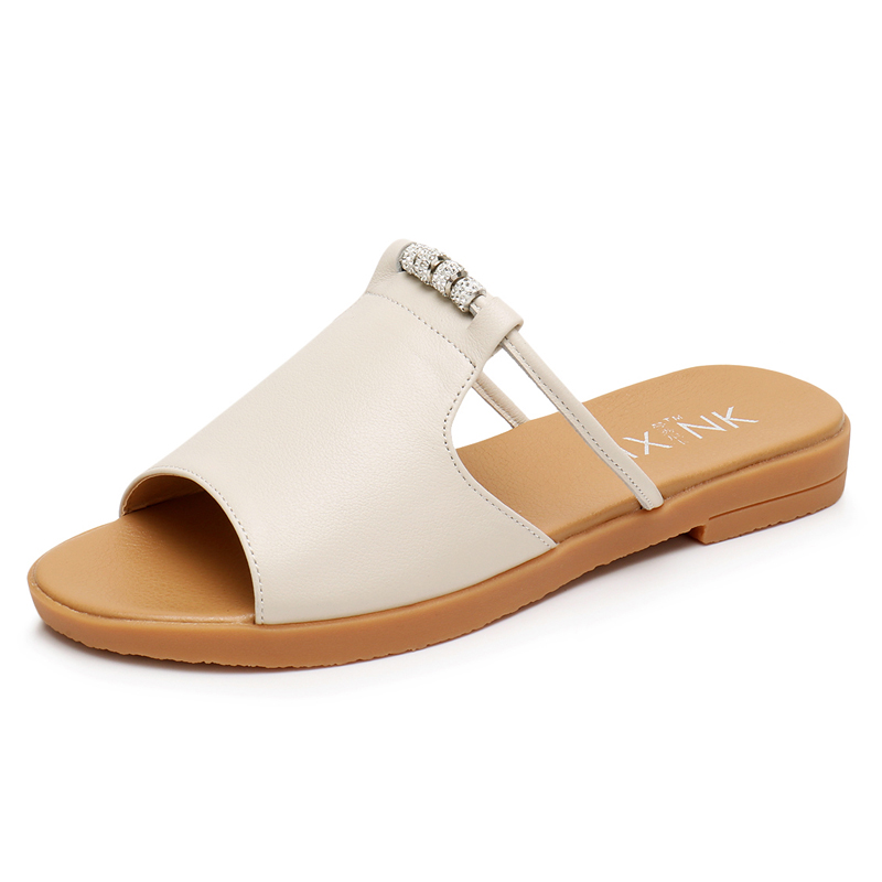 2025新款时尚软底真皮拖鞋女夏外穿平底一字拖防滑牛筋底大码凉拖