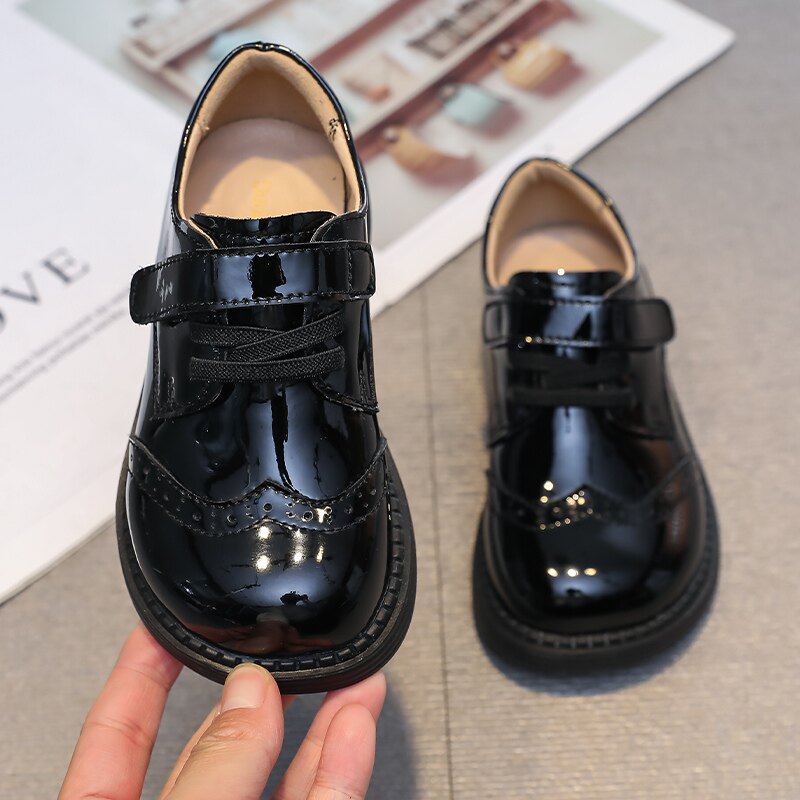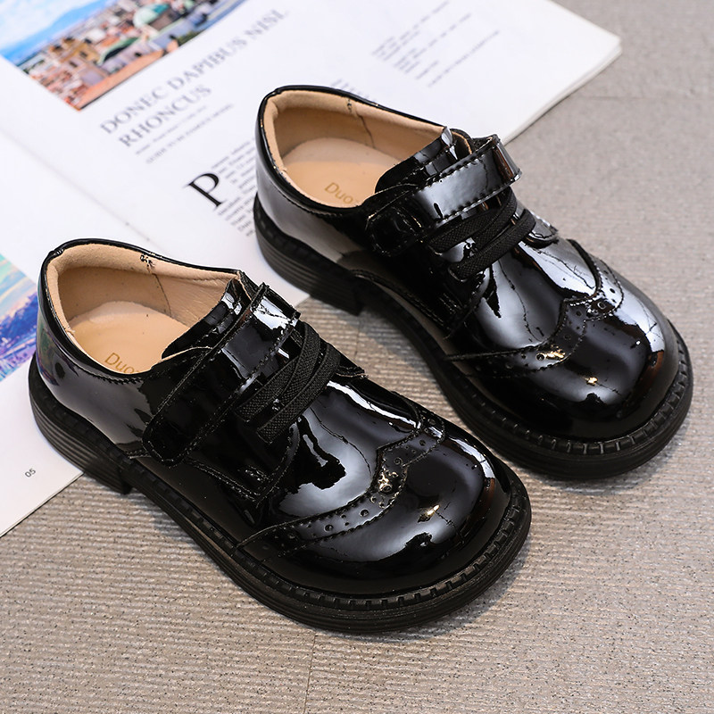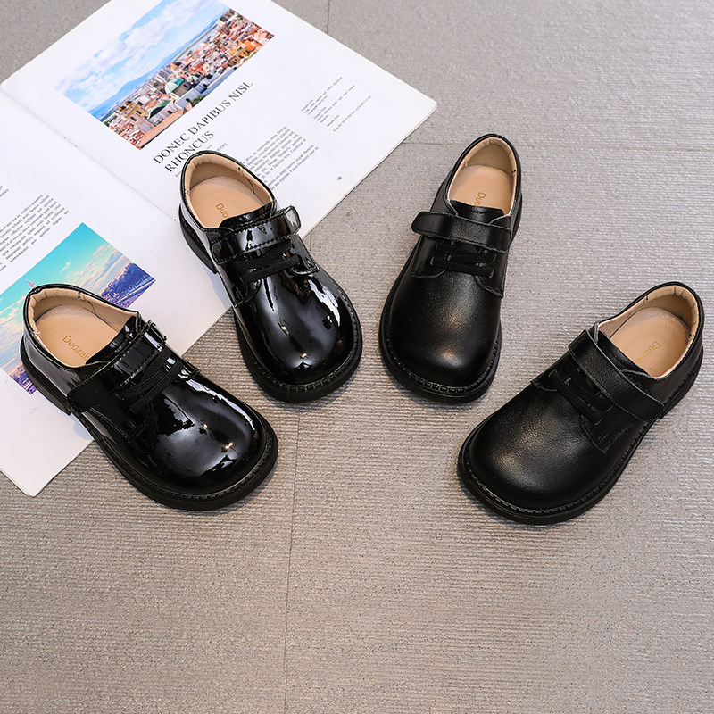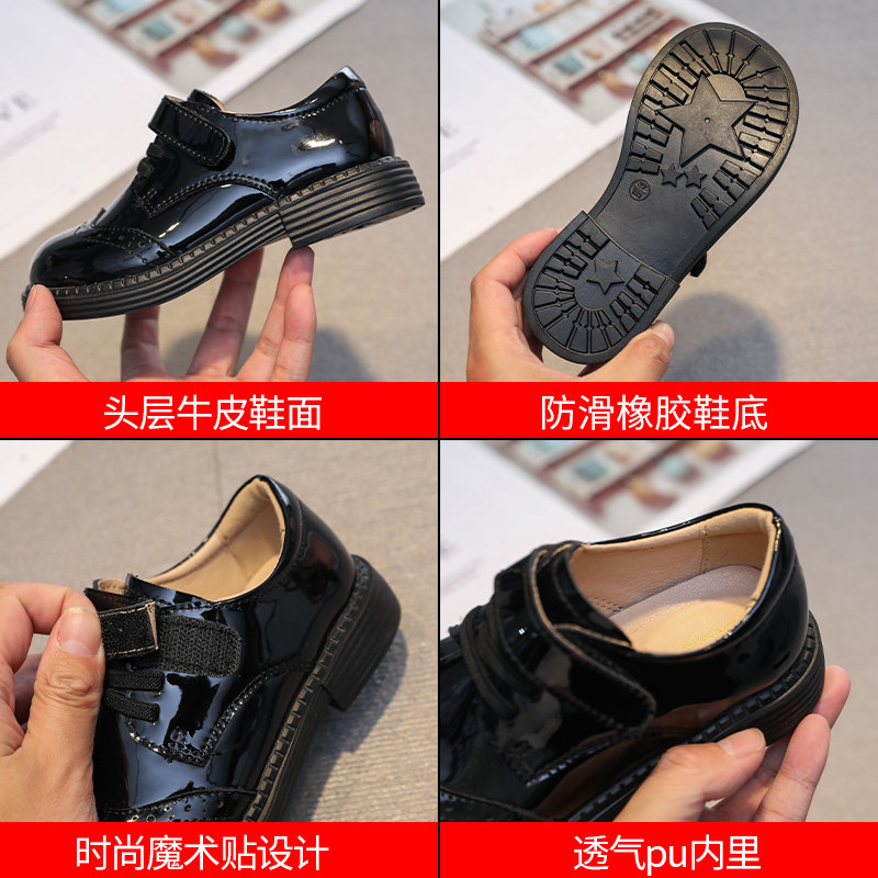 男童小皮鞋女童黑色单鞋真皮表演
