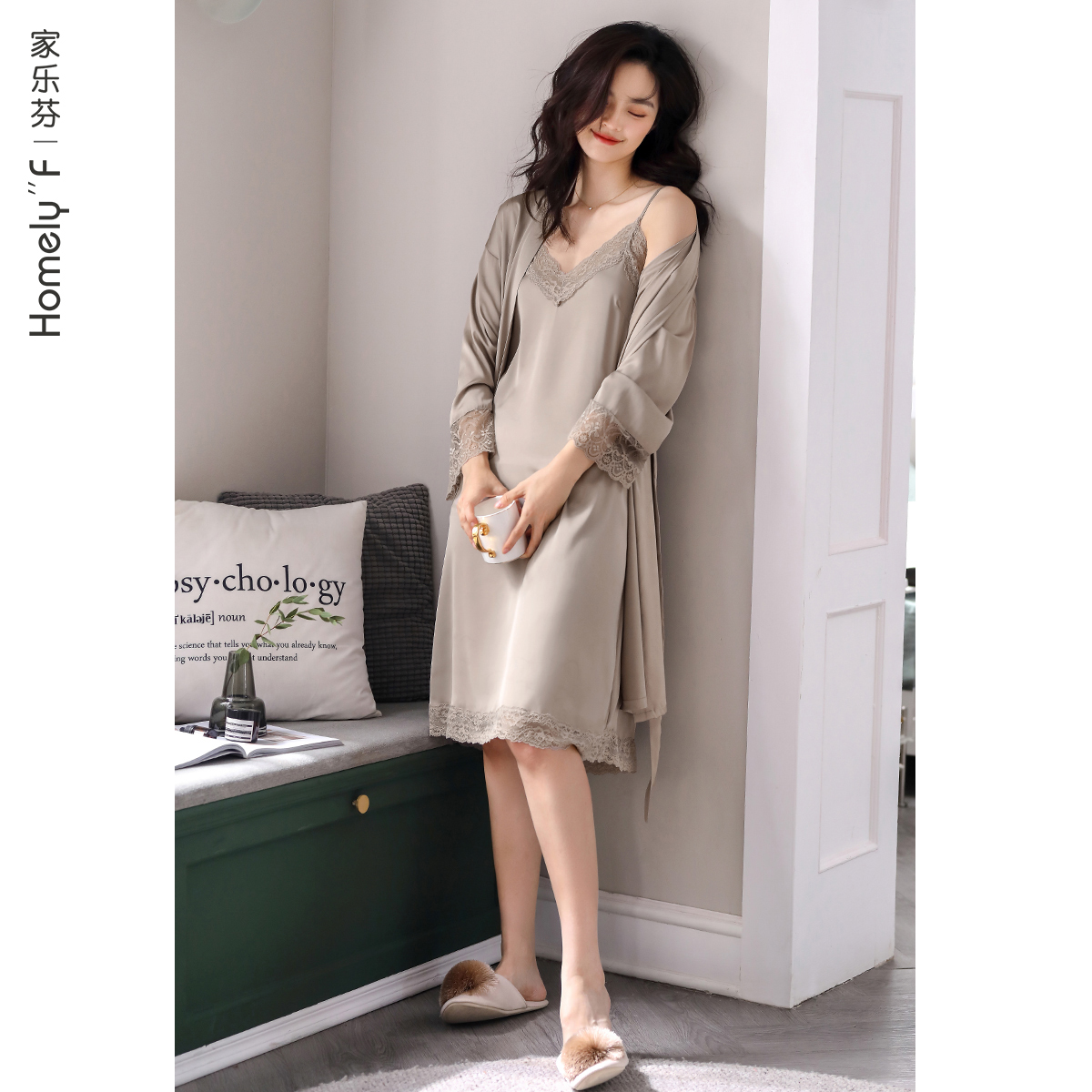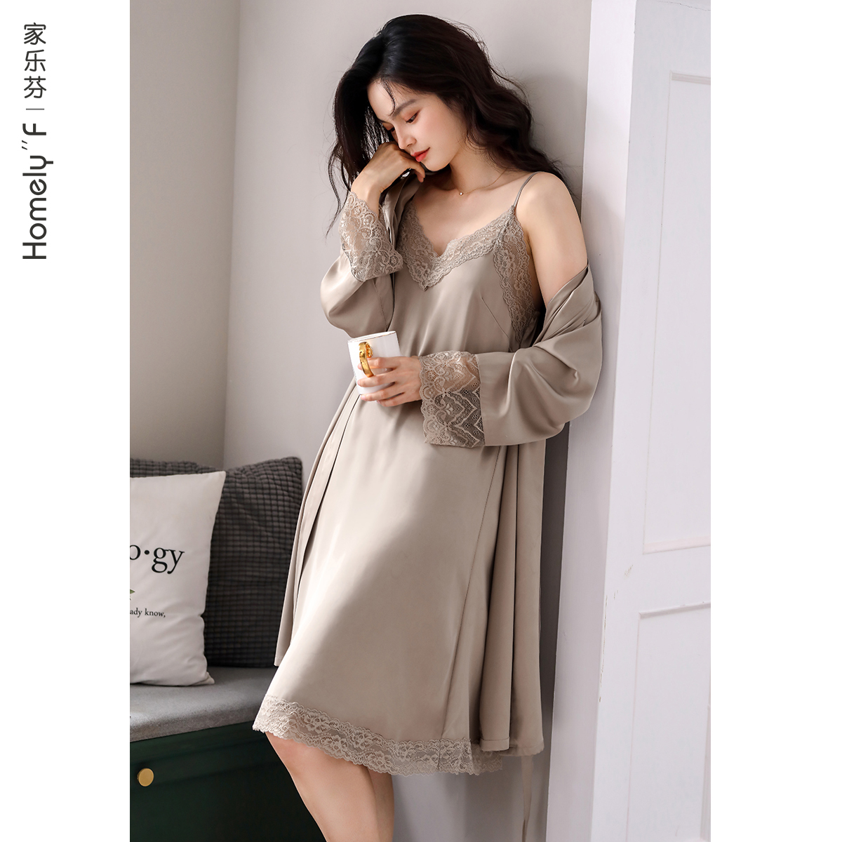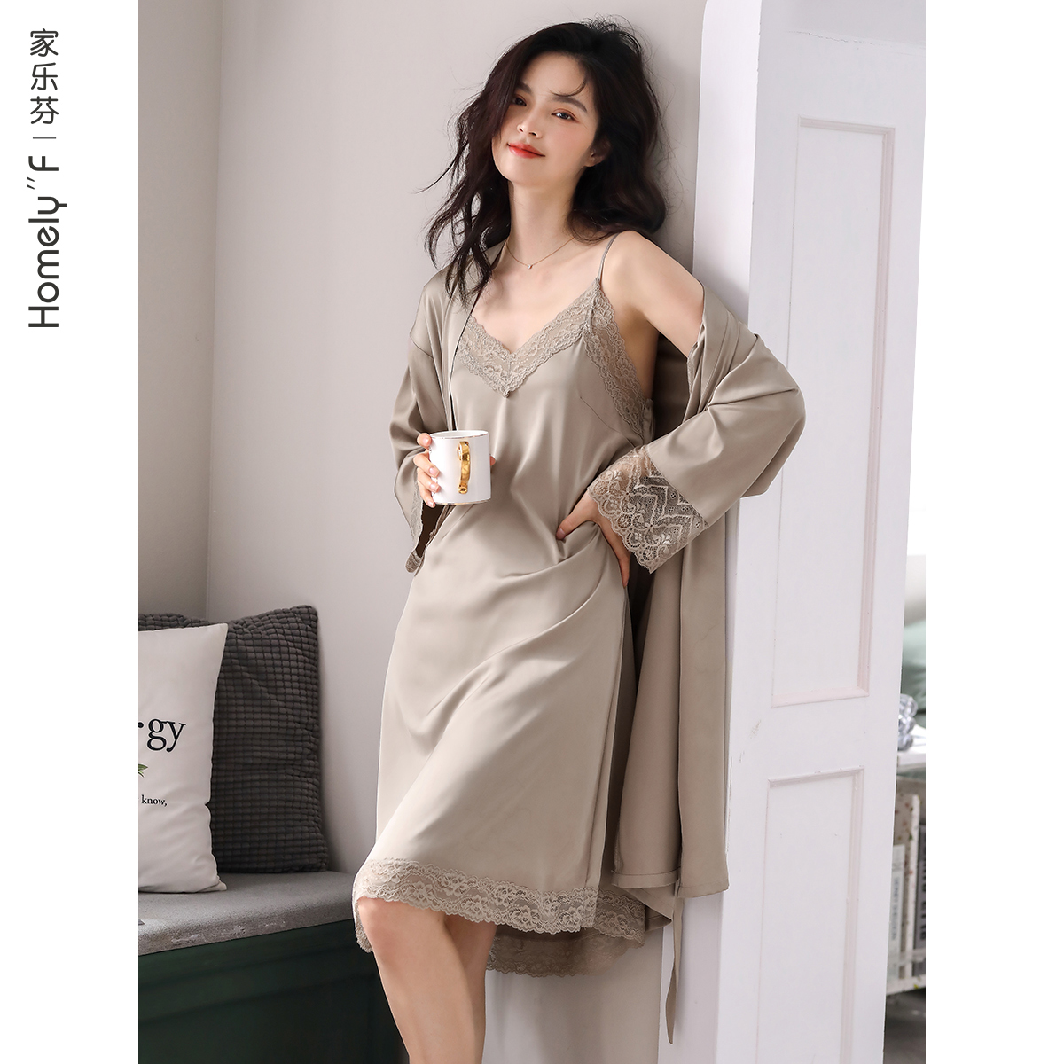 睡衣女睡袍浴袍春秋丝绸冰丝春季夏季仿真丝吊带睡裙性感两件套装