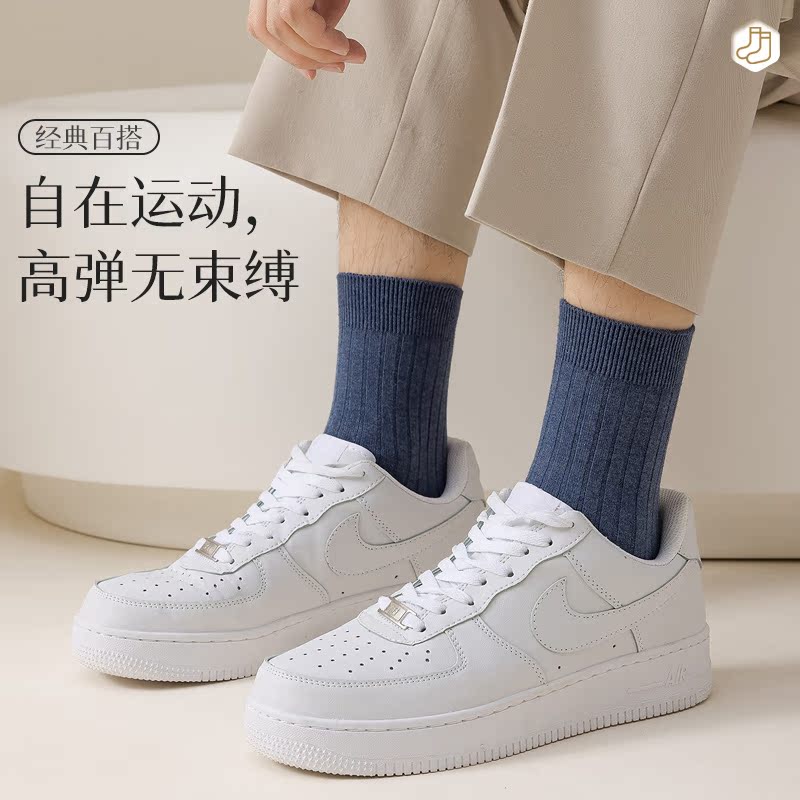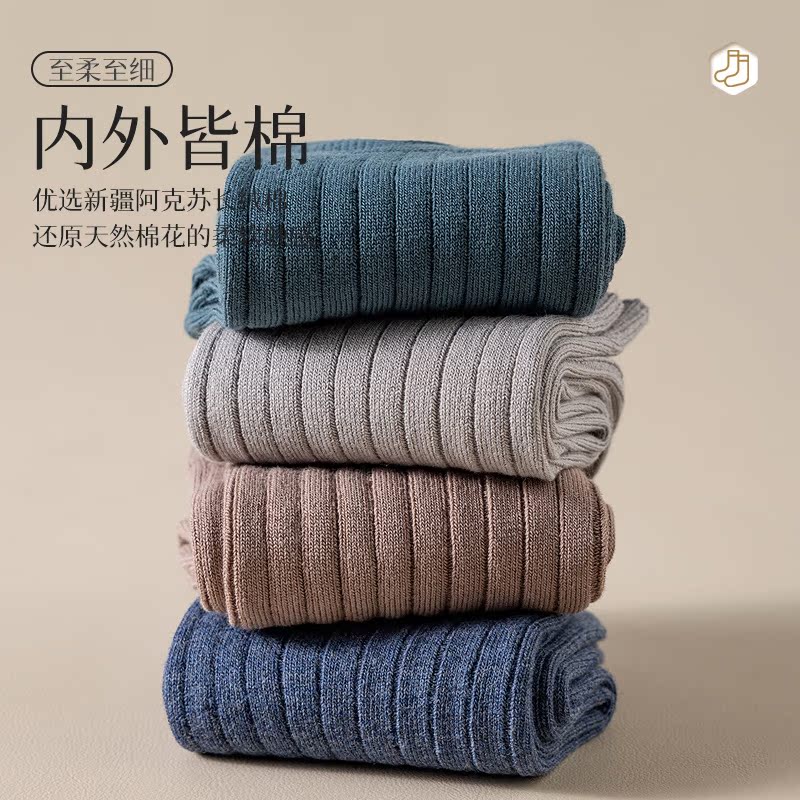 男士纯棉袜子100%全棉中筒袜秋冬季抗菌防臭透气黑色抽条商务男袜