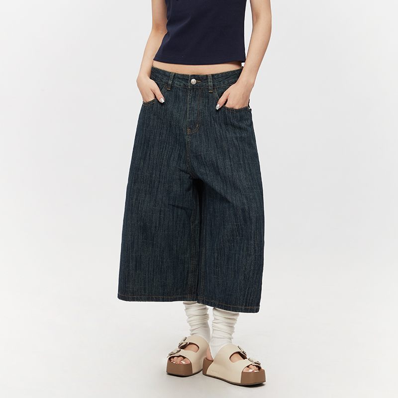AIRHOOD 2025夏季新款七分牛仔裤男女美式复古宽松小个子阔腿短裤