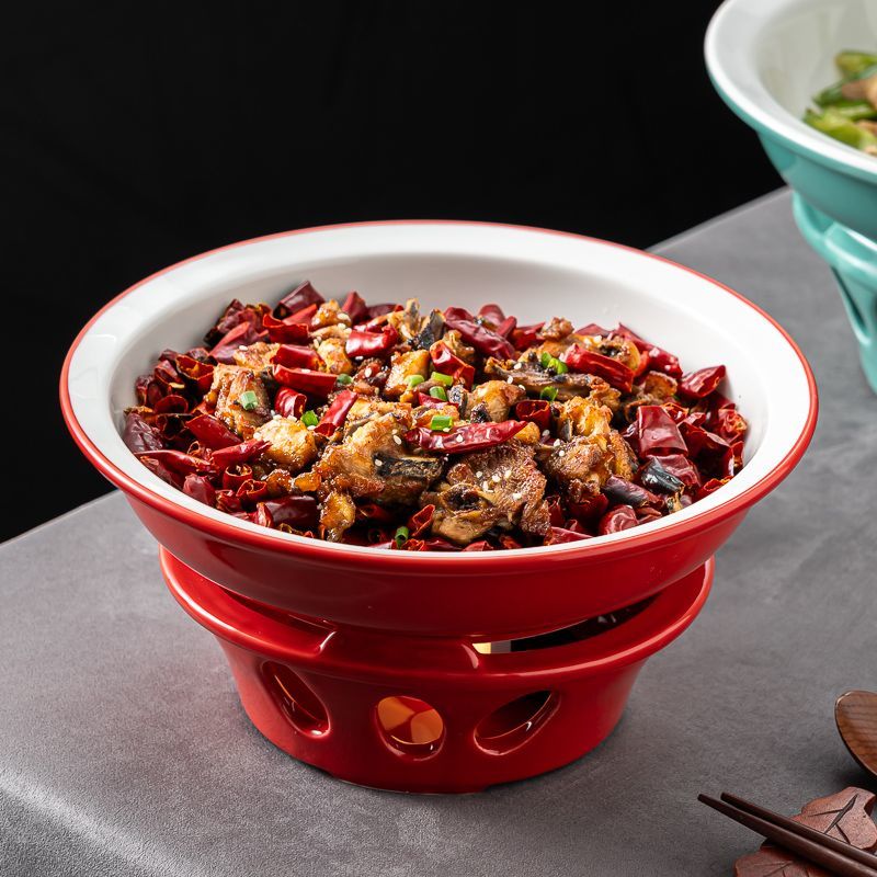 湘菜小炒黄牛肉盘子带底座蜡烛火加热明炉保温私房菜饭店专用餐具