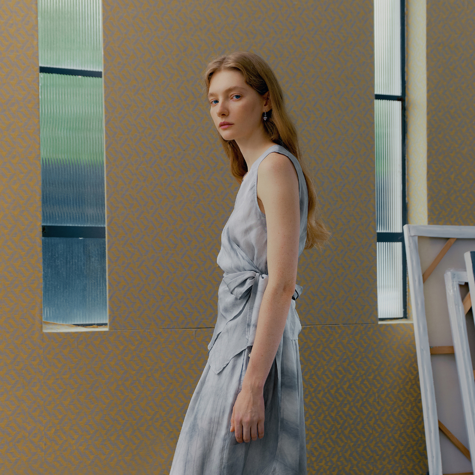 【长相思相柳联名】wana try新中式夏季新款水墨感飘带褶皱上衣