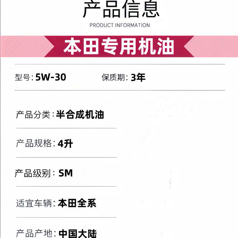 本田5W-30半合成飞度凌派缤智锋范雅阁哥瑞杰德专用机油蓝桶正品