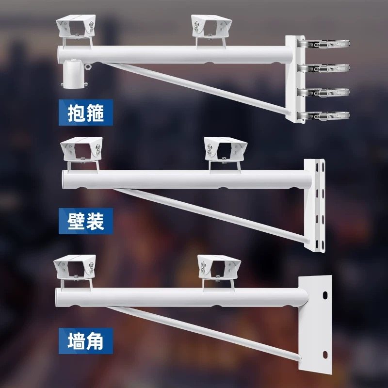 双枪监控支架室外加长摄像头横杆抱柱壁装双头电线杆立杆抱箍支架