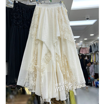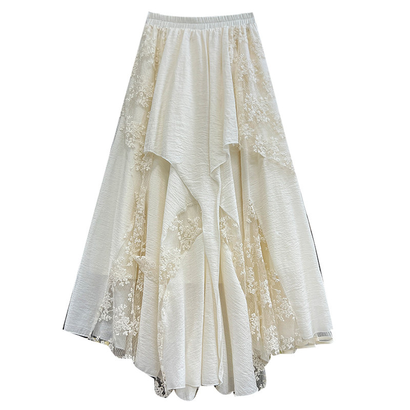 冬季好看重工白色不规则蕾丝网纱半身裙女秋冬2025新款纱裙长裙子