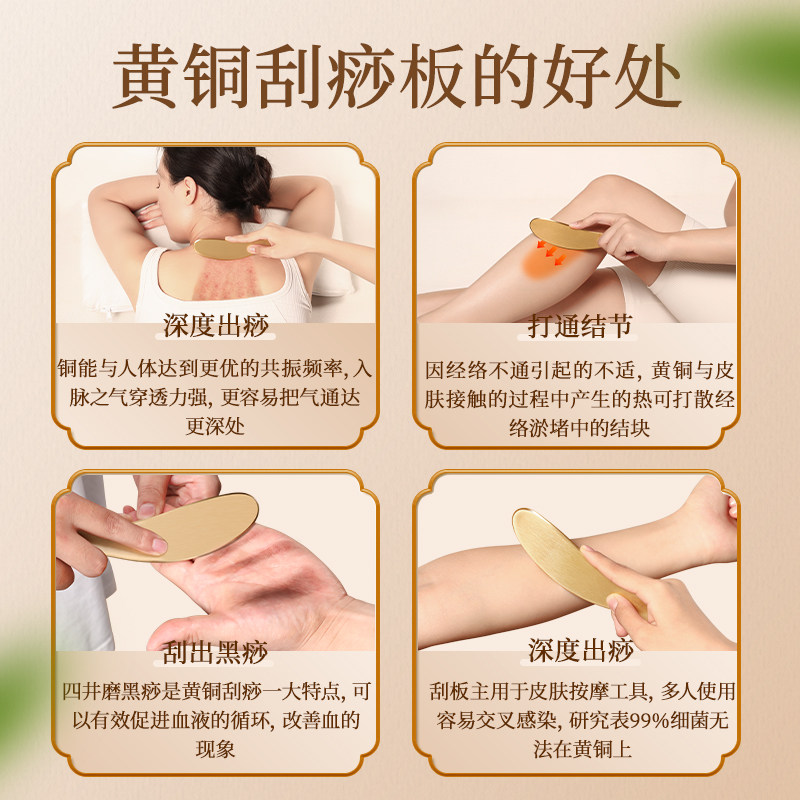 李氏砭法黄铜刮痧板纯铜虎符铜砭刮痧板肩颈背全身通用铜制刮痧刀