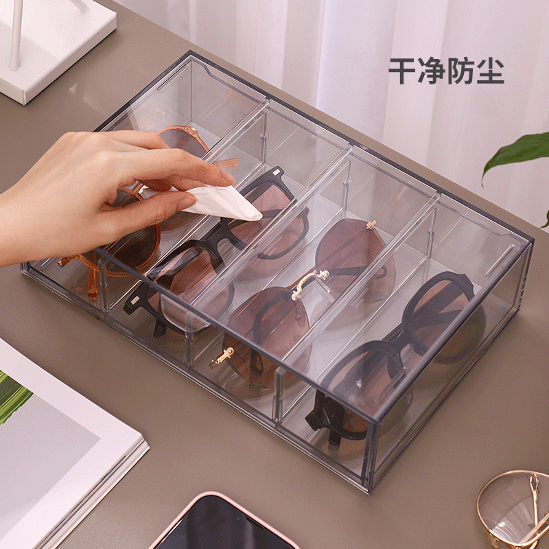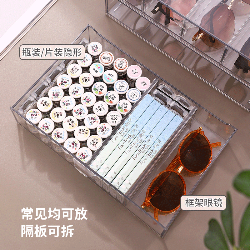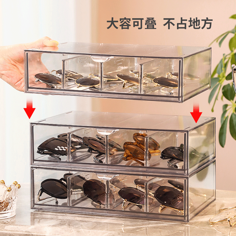亚克力桌面眼镜墨镜收纳盒抽屉分隔透明防尘叠加化妆品口红置物架