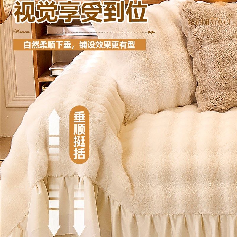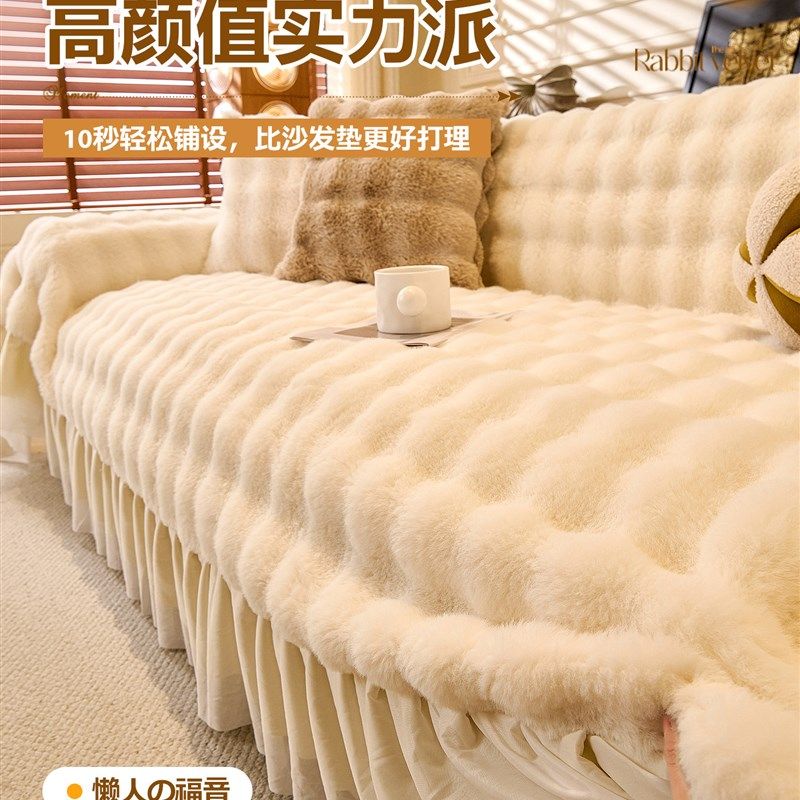 法式奶油风兔毛绒沙发盖布秋冬一体式防滑盖巾毯子沙发套罩防猫抓