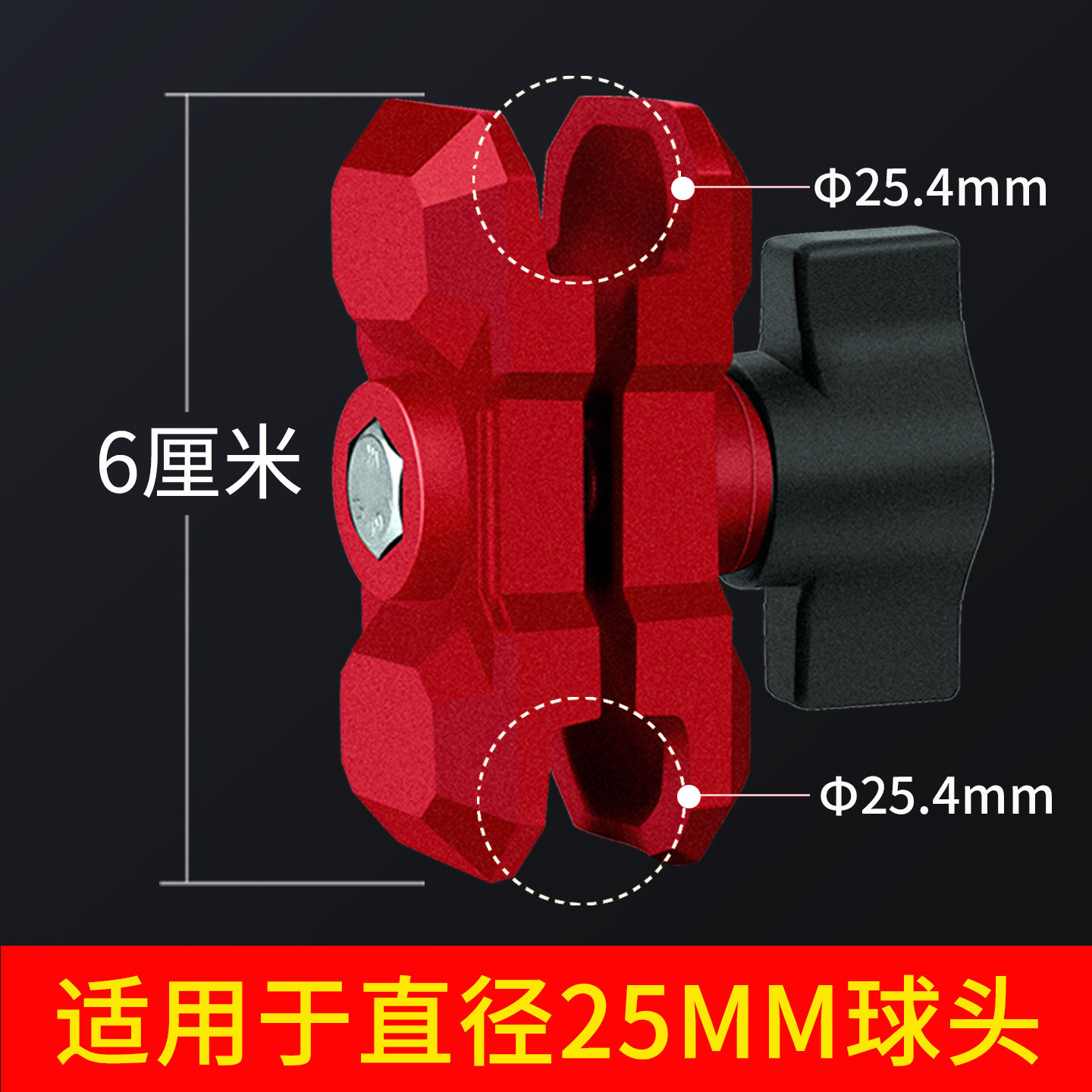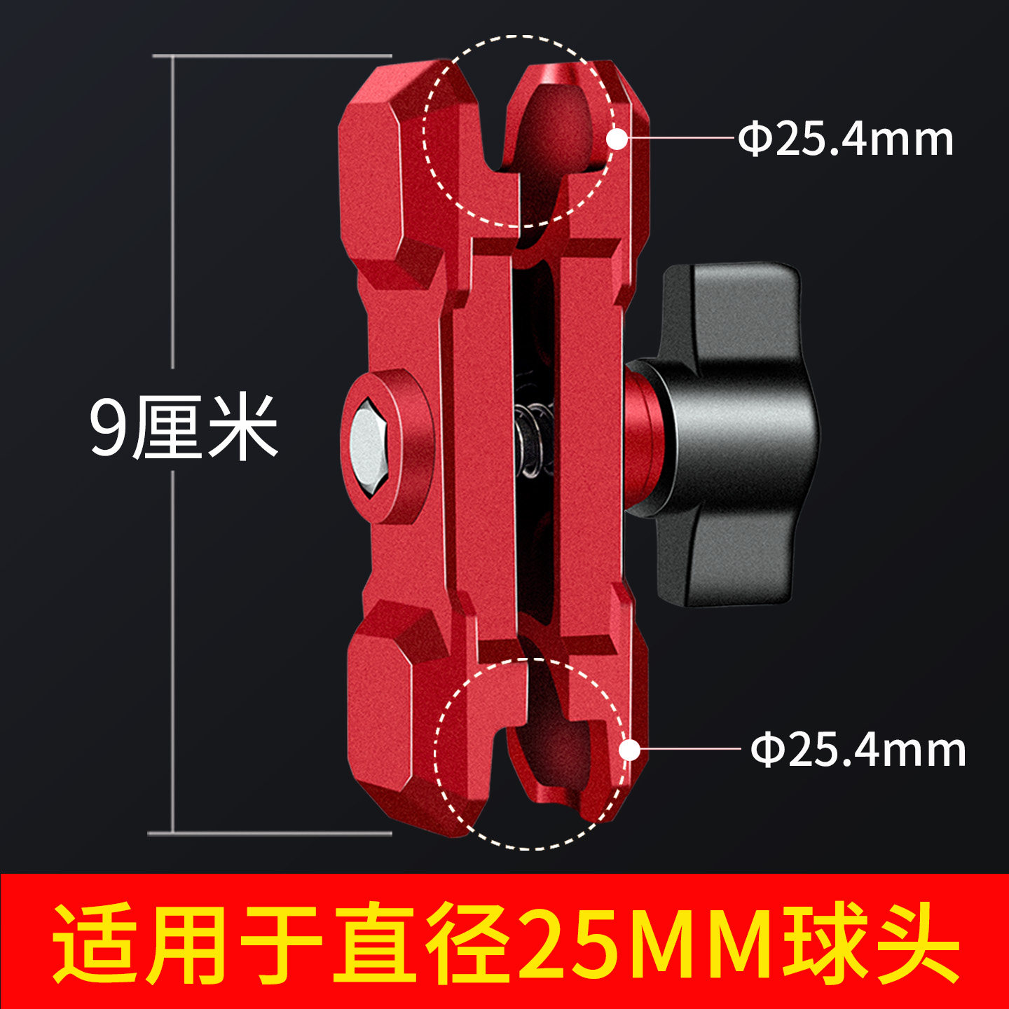 红色铝合金连接臂25mm球头连杆车载骑行手机支架配件支撑夹臂机甲