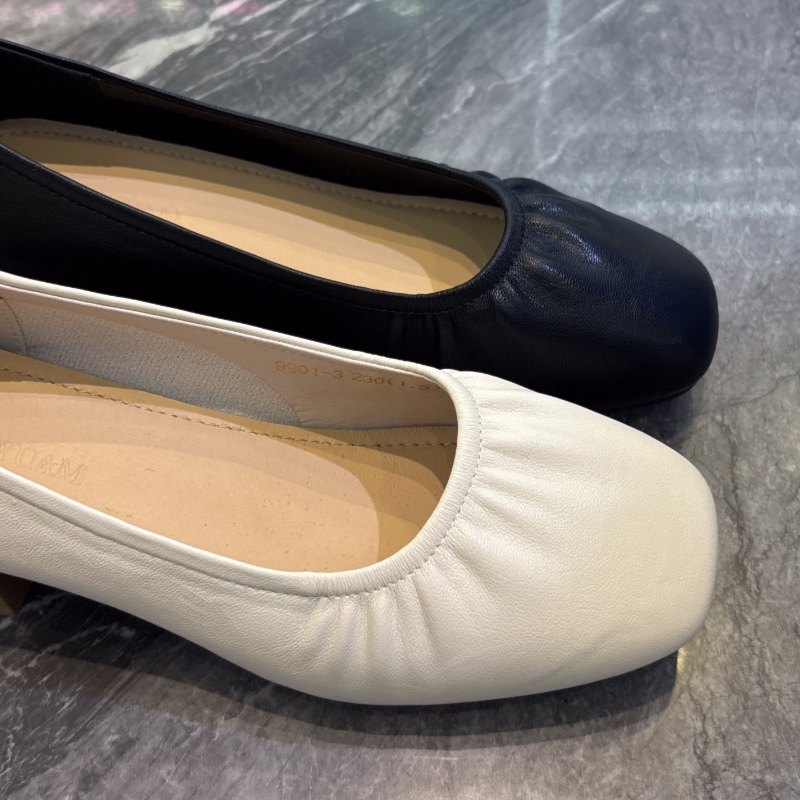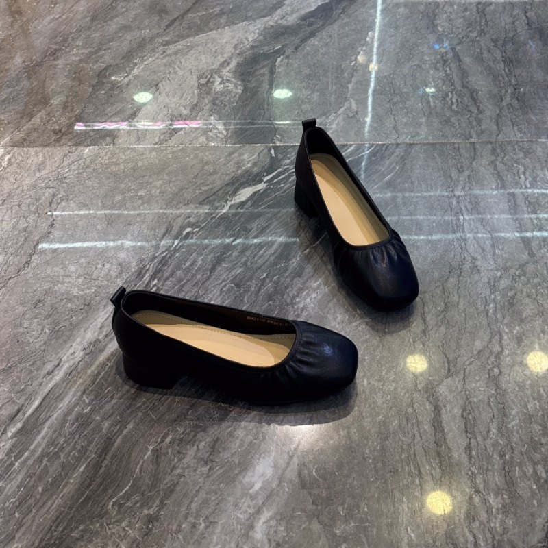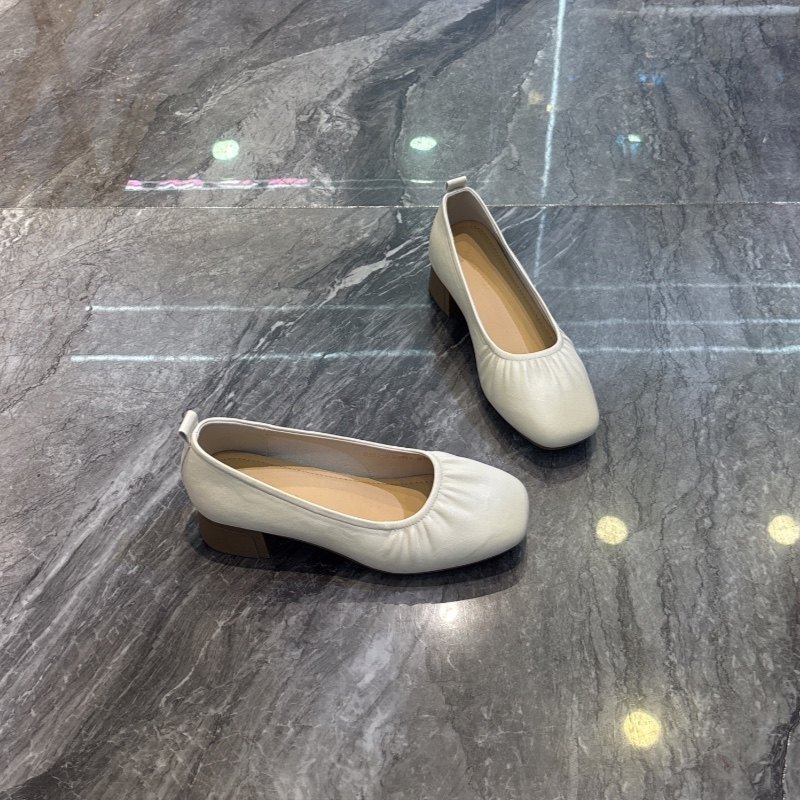 2025年新款春季真皮方头褶皱浅口单鞋女平底奶奶鞋时尚百搭