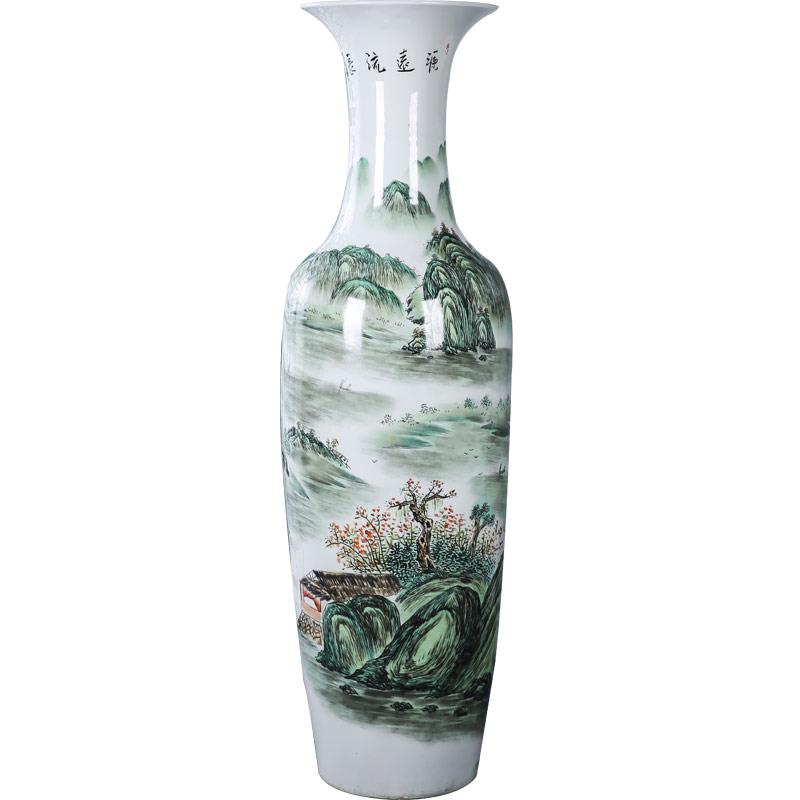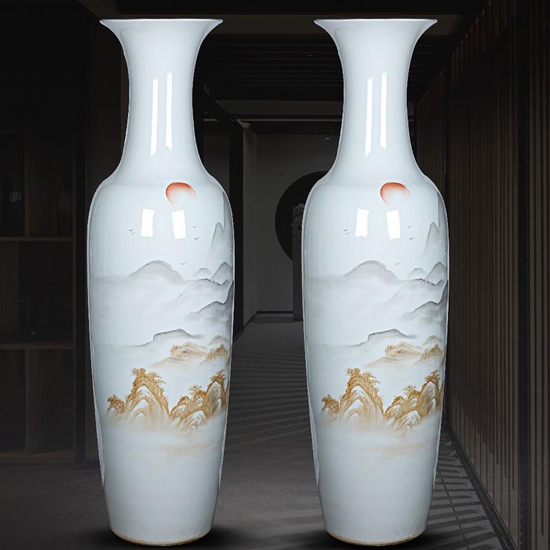景德镇陶瓷器落地大花瓶手绘粉彩山水开业瓷瓶中式客厅装饰品摆件