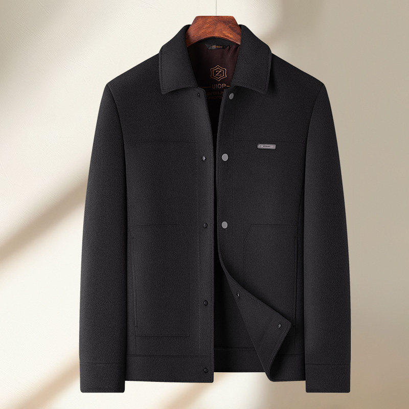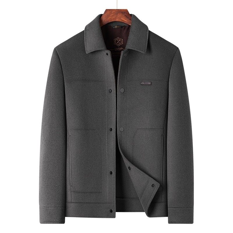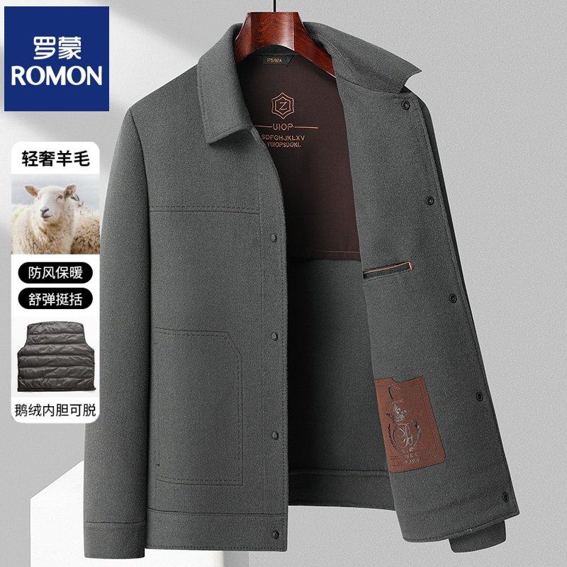 罗蒙双面呢大衣男脱卸鹅绒内胆短款毛呢夹克中年爸爸翻领呢子外套