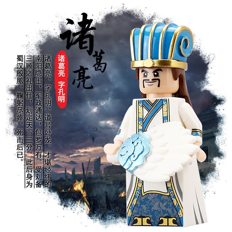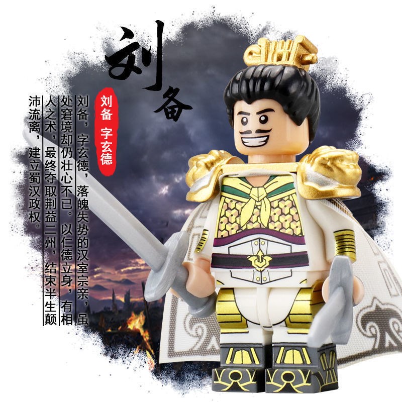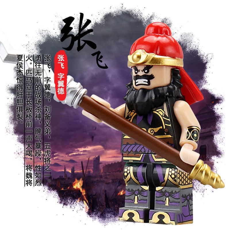 迪库三国小侠积木人仔五虎上将关羽刘备赵云男孩益智拼装玩具礼物