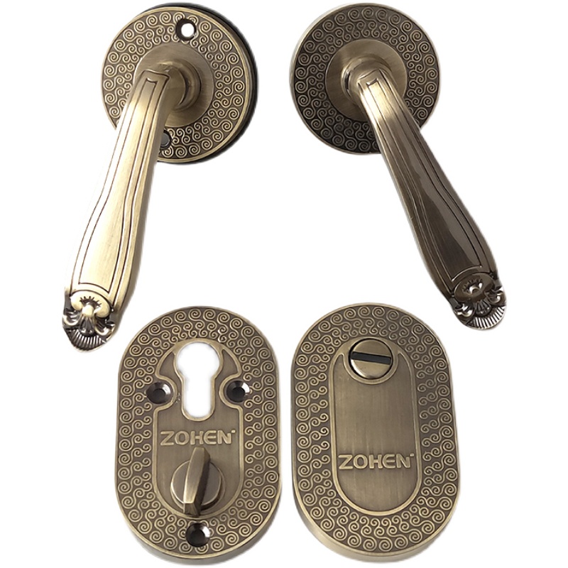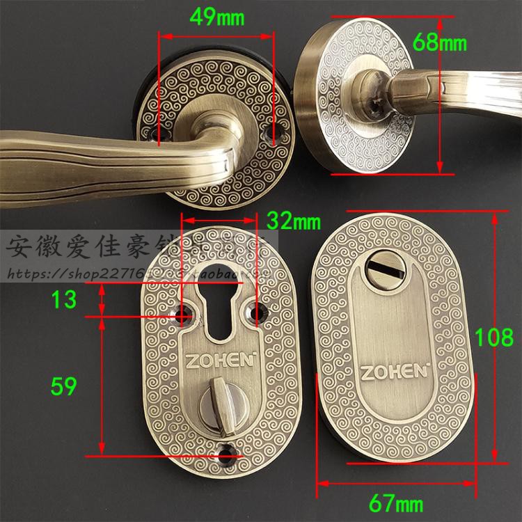 保德安忠恒青古铜分体把手 雅帝乐新多防盗门拉手 两孔单活大门锁