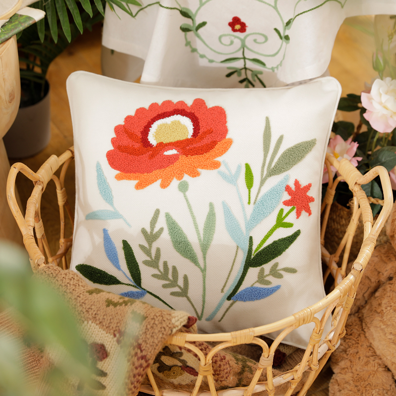 田园绣花布艺抱枕套沙发靠包鲁绣办公室腰枕美式乡村风靠枕靠垫套