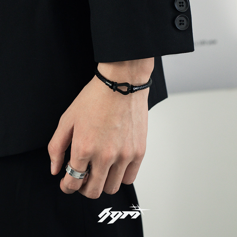 钛钢马蹄扣手链男生轻奢小众精致手绳高级感潮黑色单身嘻哈复古
