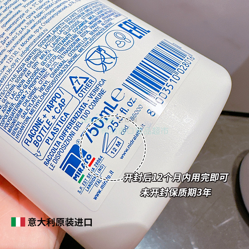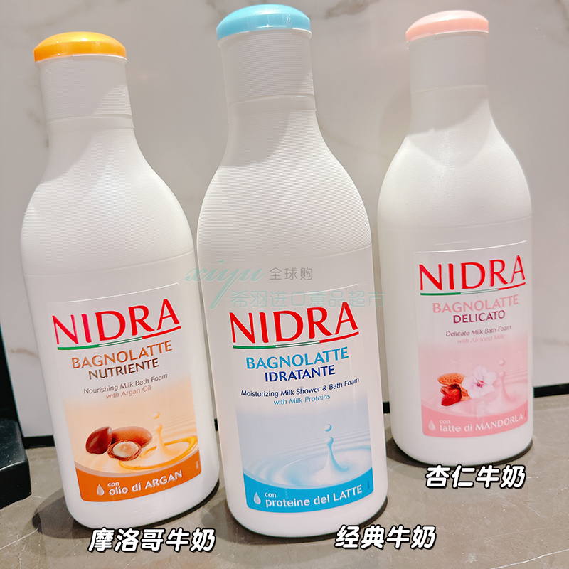 儿童可用!意大利原装Nidra牛奶沐浴露补水滋润750ml长久留香天然