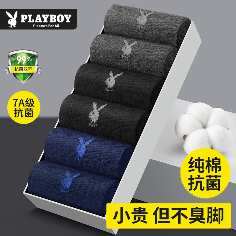 花花公子男士袜子男款纯棉防臭7a抗菌中筒袜全棉吸汗透气商务男袜