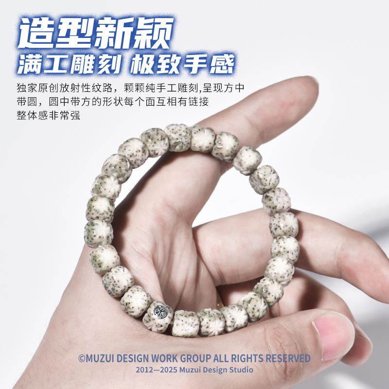 木醉星月菩提手串男大留白银标满工雕刻原创EDC解压设计万花冰镜