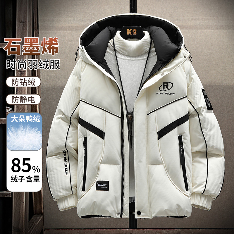 羽绒服男款冬季2025新款连帽保暖外套男冬装户外白鸭绒防寒服以純