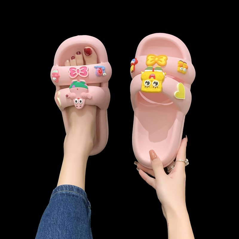 可爱卡通双带厚底防滑凉拖鞋