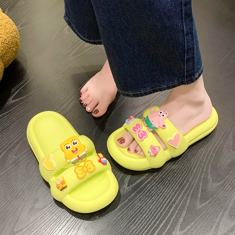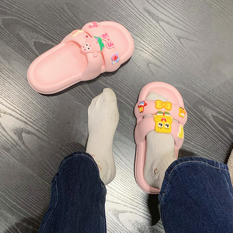 踩屎感拖鞋女夏季可爱卡通双带防滑外穿厚底室内居家用浴室凉拖鞋
